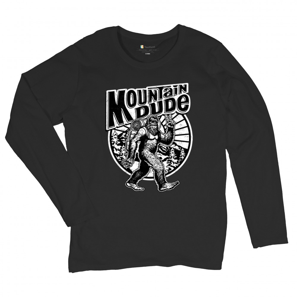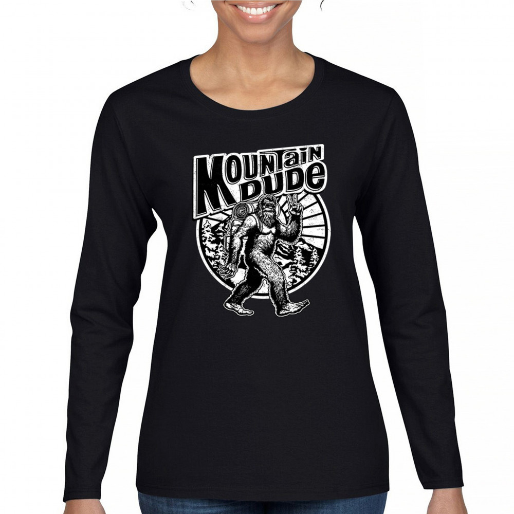 MOUNTAIN DUDE BIGFOOT women's long sleeve t-shirt funny vintage sasquatch retro black
