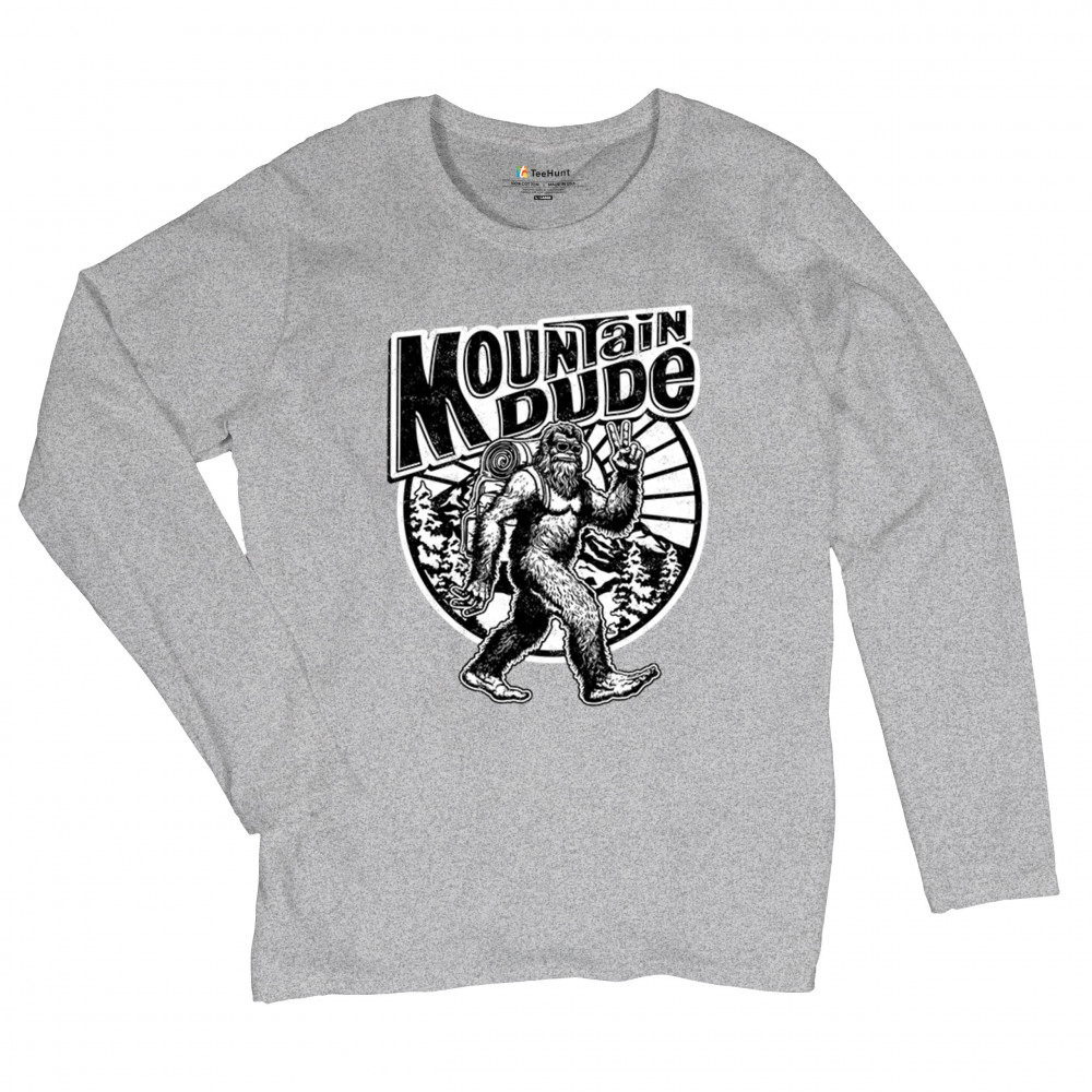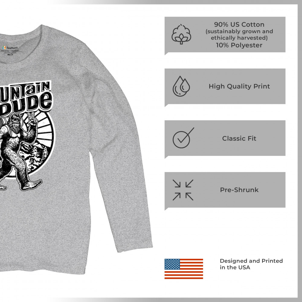 Celebrate outdoor adventures with the "Mountain Dude" design, featuring Sasquatch and mountain scenery. Perfect for hikers, campers, and Bigfoot fans.