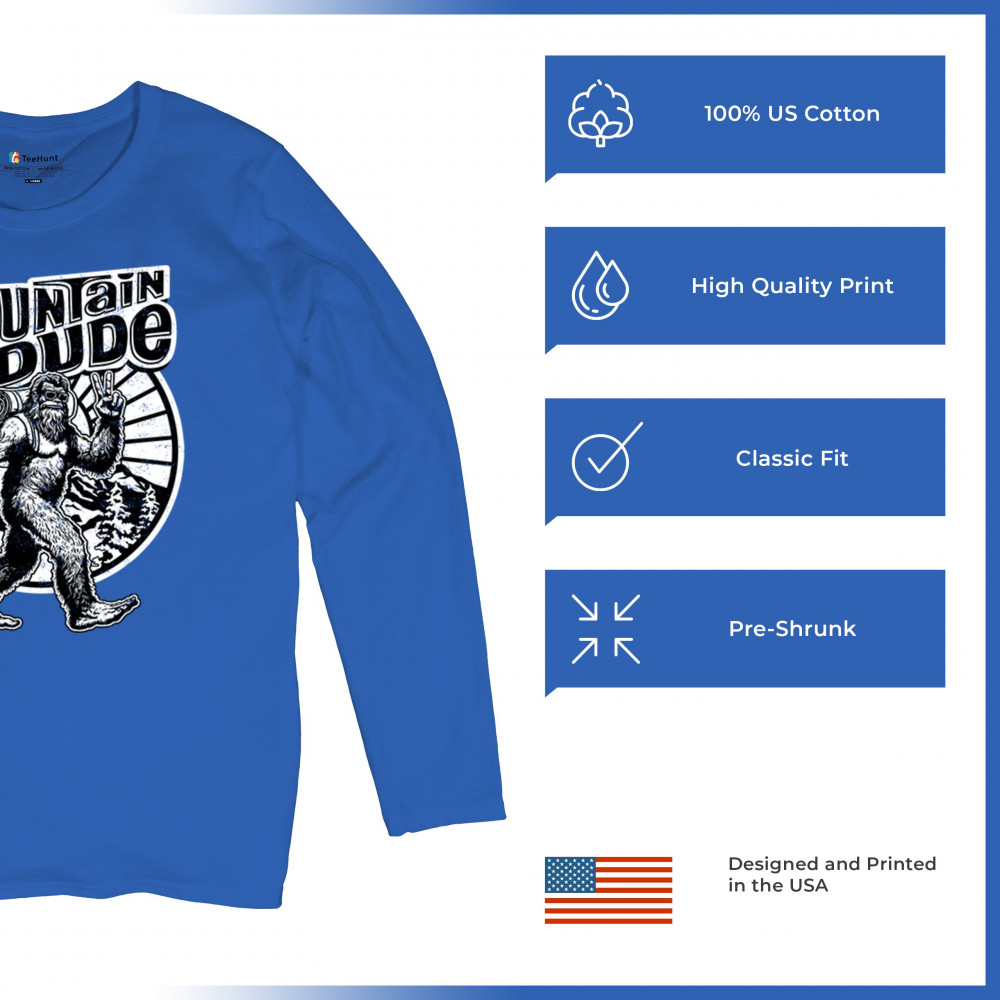 Celebrate outdoor adventures with the "Mountain Dude" design, featuring Sasquatch and mountain scenery. Perfect for hikers, campers, and Bigfoot fans.