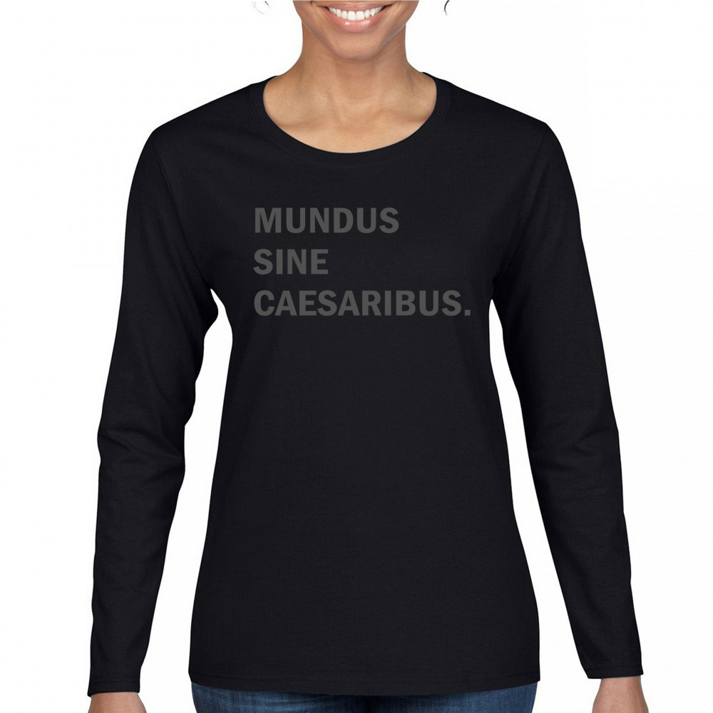 “Mundus Sine Caesaribus†Latin parody tee for rebels, meme lovers, and those tired of tech overlords. Make a witty anti-authority statement.