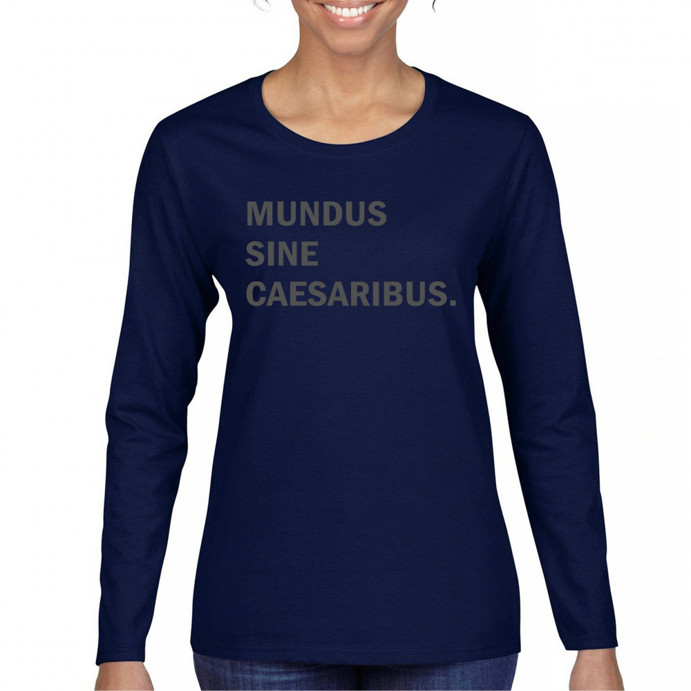 “Mundus Sine Caesaribus†Latin parody tee for rebels, meme lovers, and those tired of tech overlords. Make a witty anti-authority statement.