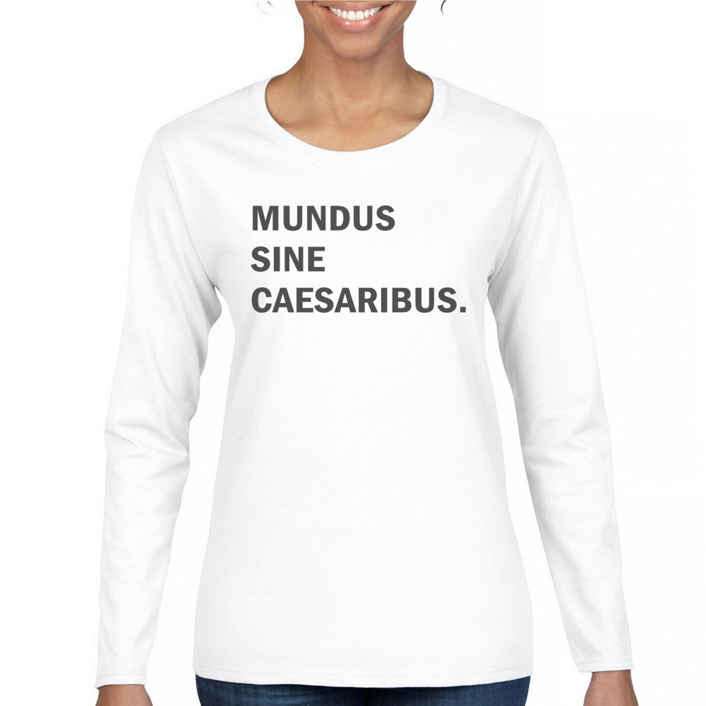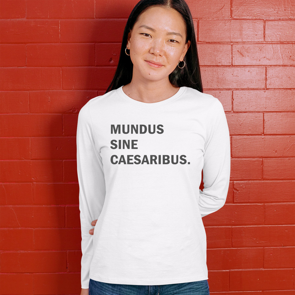 “Mundus Sine Caesaribus†Latin parody tee for rebels, meme lovers, and those tired of tech overlords. Make a witty anti-authority statement.