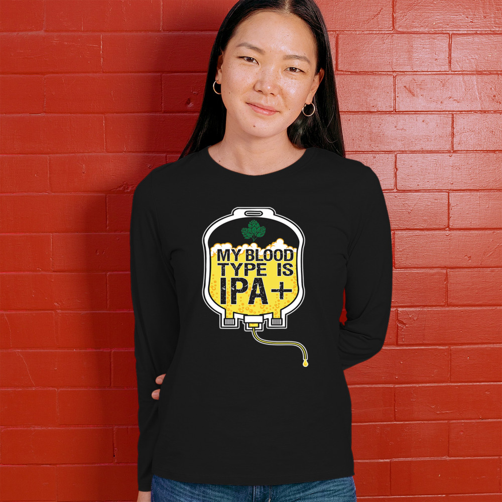 Bold and hilarious, this “My Blood Type Is IPA+†design features a dripping blood bag filled with frothy craft beer. The detailed hops and beer foam artwork make it perfect for IPA snobs, brew bros, and connoisseurs. Whether at a pub crawl or your local brewery, show your blood runs IPA with this standout design for beer lovers, hop heads, and festival fans.