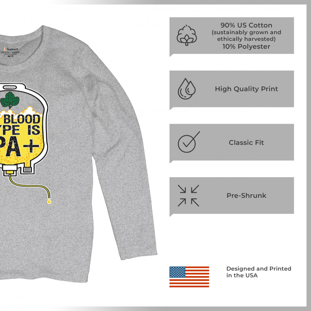 Bold and hilarious, this “My Blood Type Is IPA+†design features a dripping blood bag filled with frothy craft beer. The detailed hops and beer foam artwork make it perfect for IPA snobs, brew bros, and connoisseurs. Whether at a pub crawl or your local brewery, show your blood runs IPA with this standout design for beer lovers, hop heads, and festival fans.