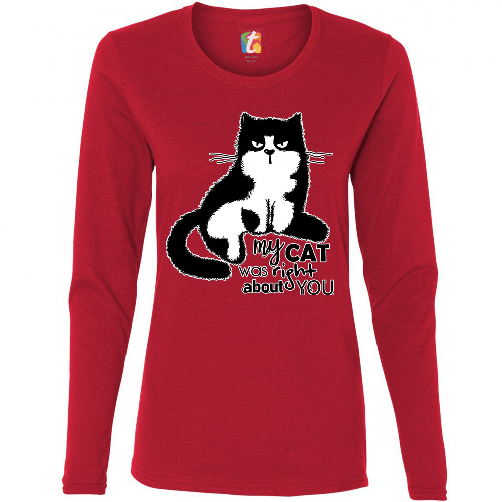 MY CAT WAS RIGHT ABOUT YOU women's long sleeve t-shirt cat lover funny kitty red