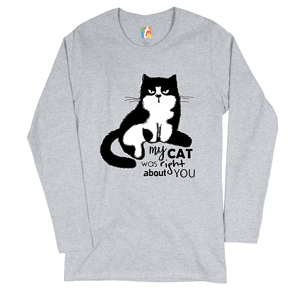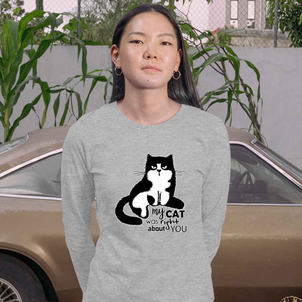 MY CAT WAS RIGHT ABOUT YOU women's long sleeve t-shirt cat lover funny kitty gray