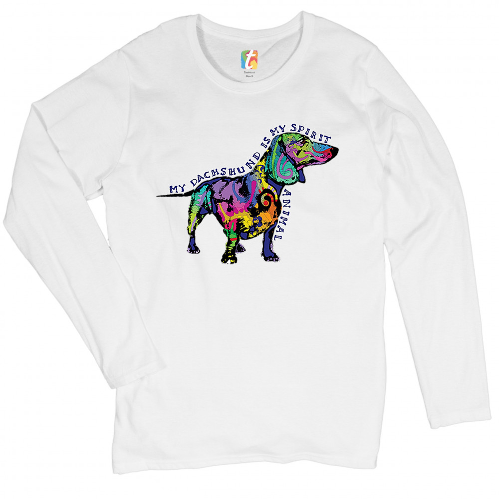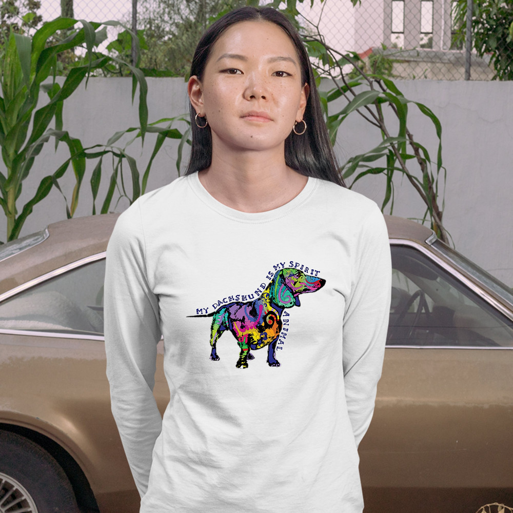 MY DACHSHUND IS MY SPIRIT ANIMAL women's long sleeve t-shirt puppy dog lover white