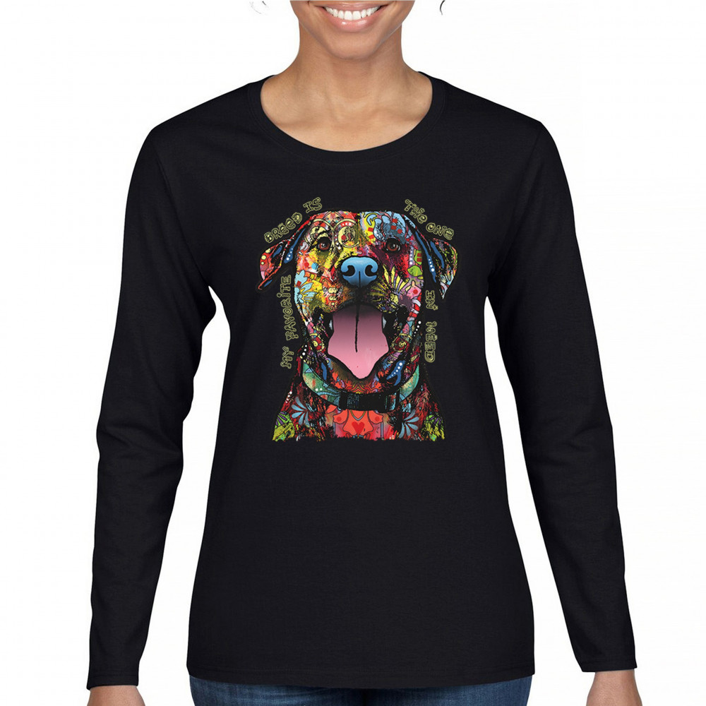 MY FAVORITE BREED IS THE ONE IN NEED women's long sleeve t-shirt dean russo dog black