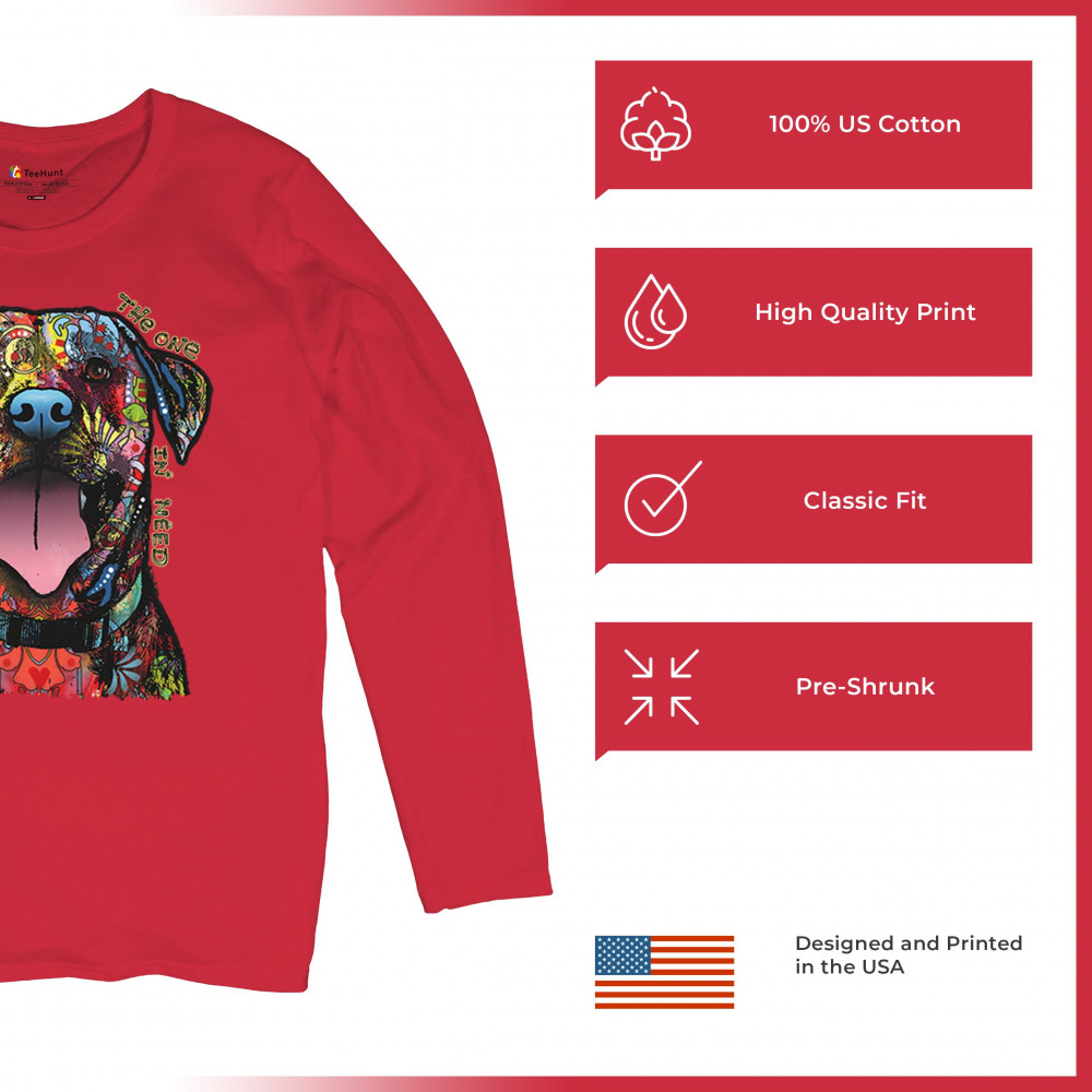 MY FAVORITE BREED IS THE ONE IN NEED women's long sleeve t-shirt dean russo dog red
