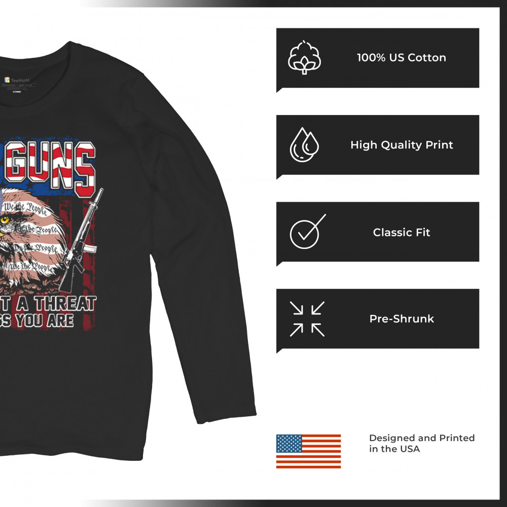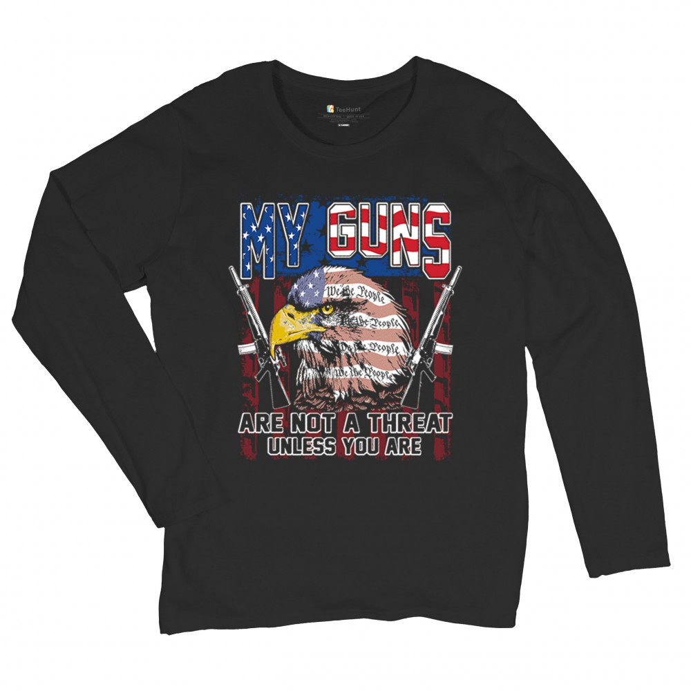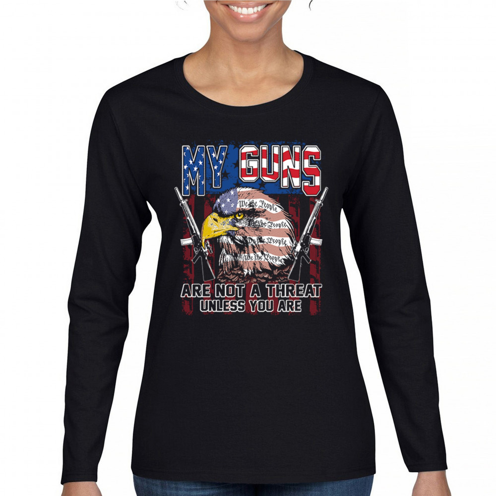 MY GUNS ARE NOT THREAT my guns not threat women's long sleeve t-shirt 2nd amendment patriotic rights black
