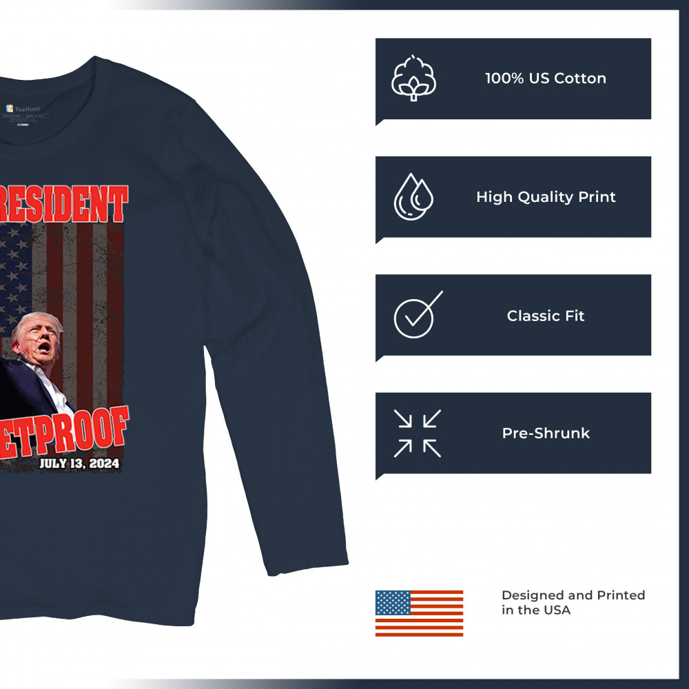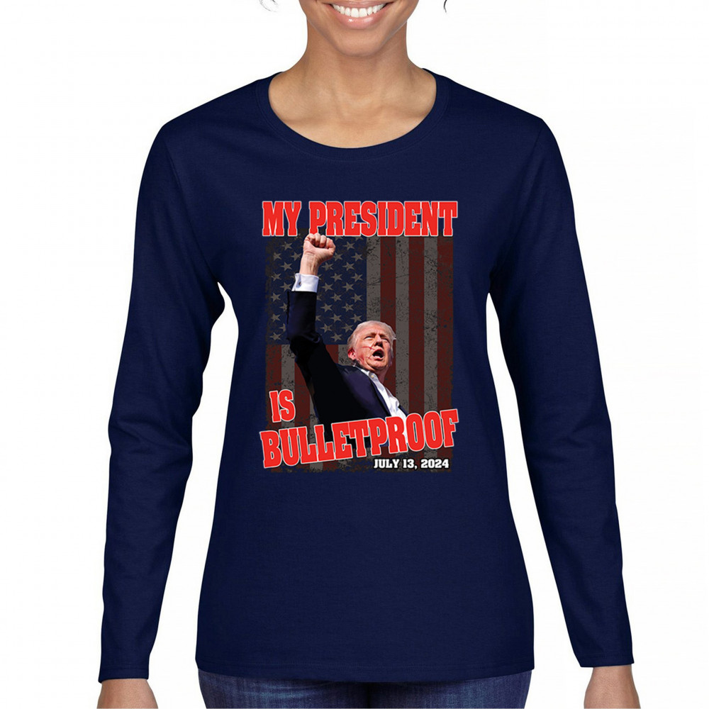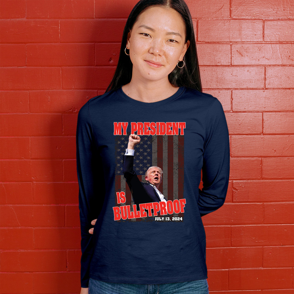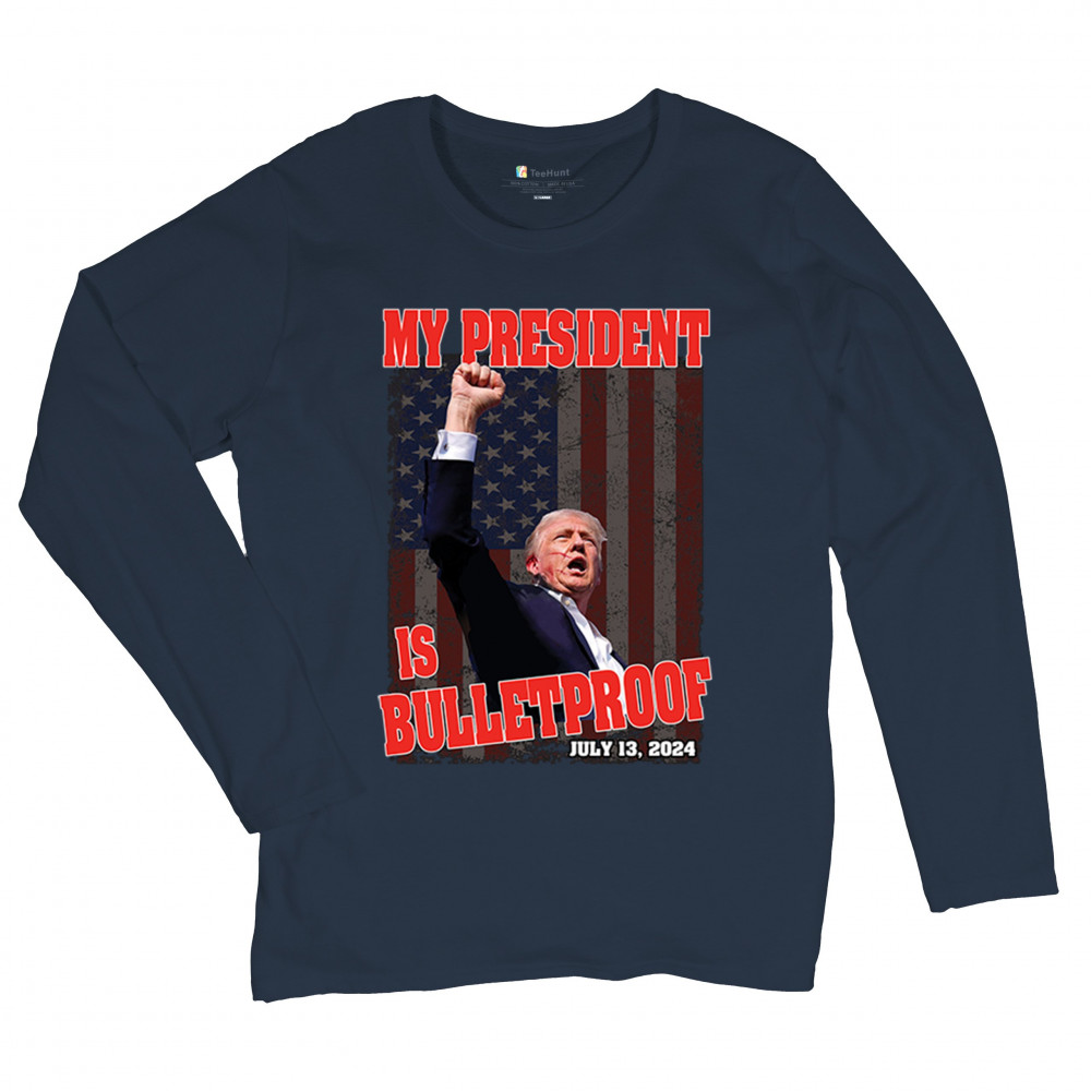 Support Trump with our "My President is Bulletproof" design, perfect for rallies and everyday wear. Show your patriotic pride and conservative values.