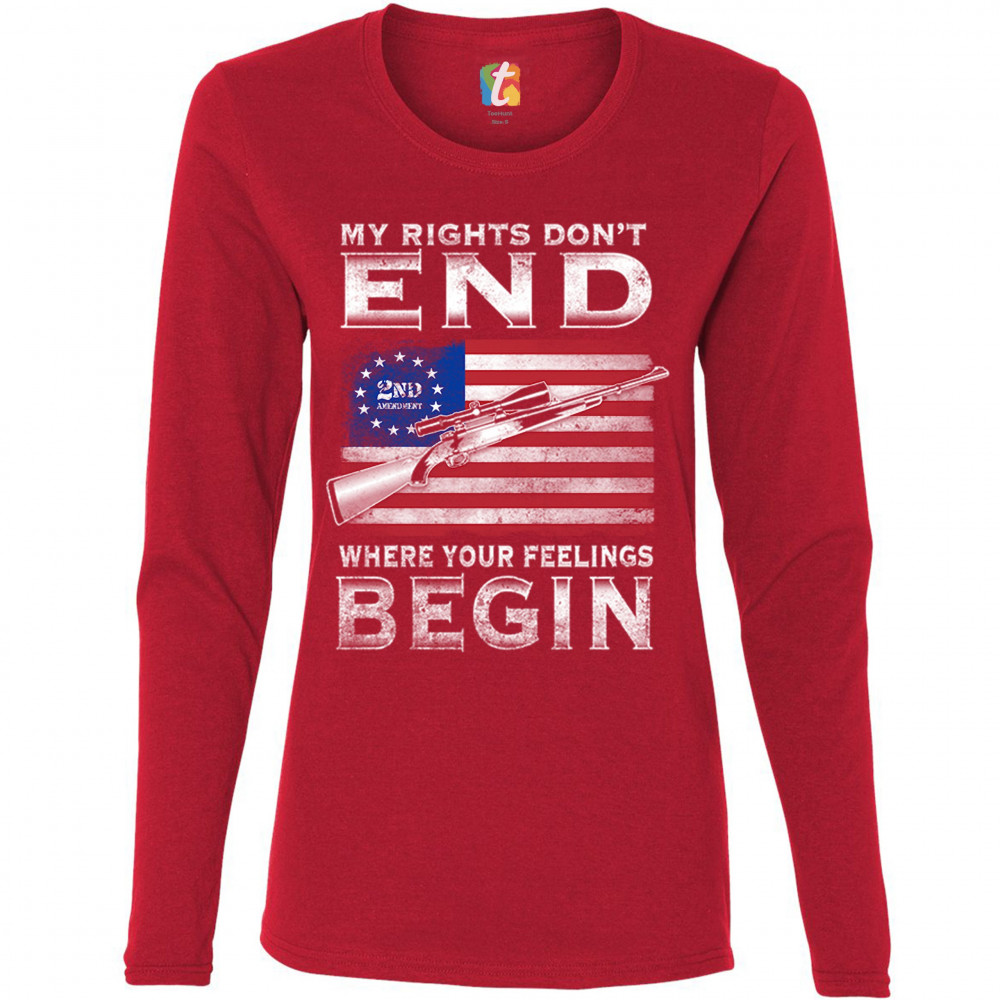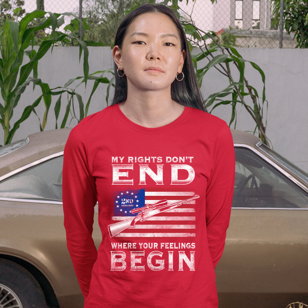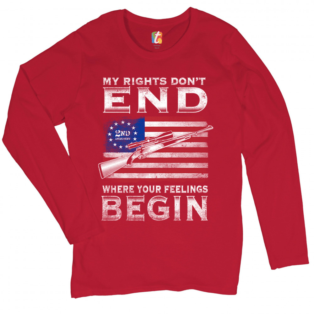 MY RIGHTS DON'T END WHERE YOUR FEELINGS BEGIN women's long sleeve t-shirt 2a red