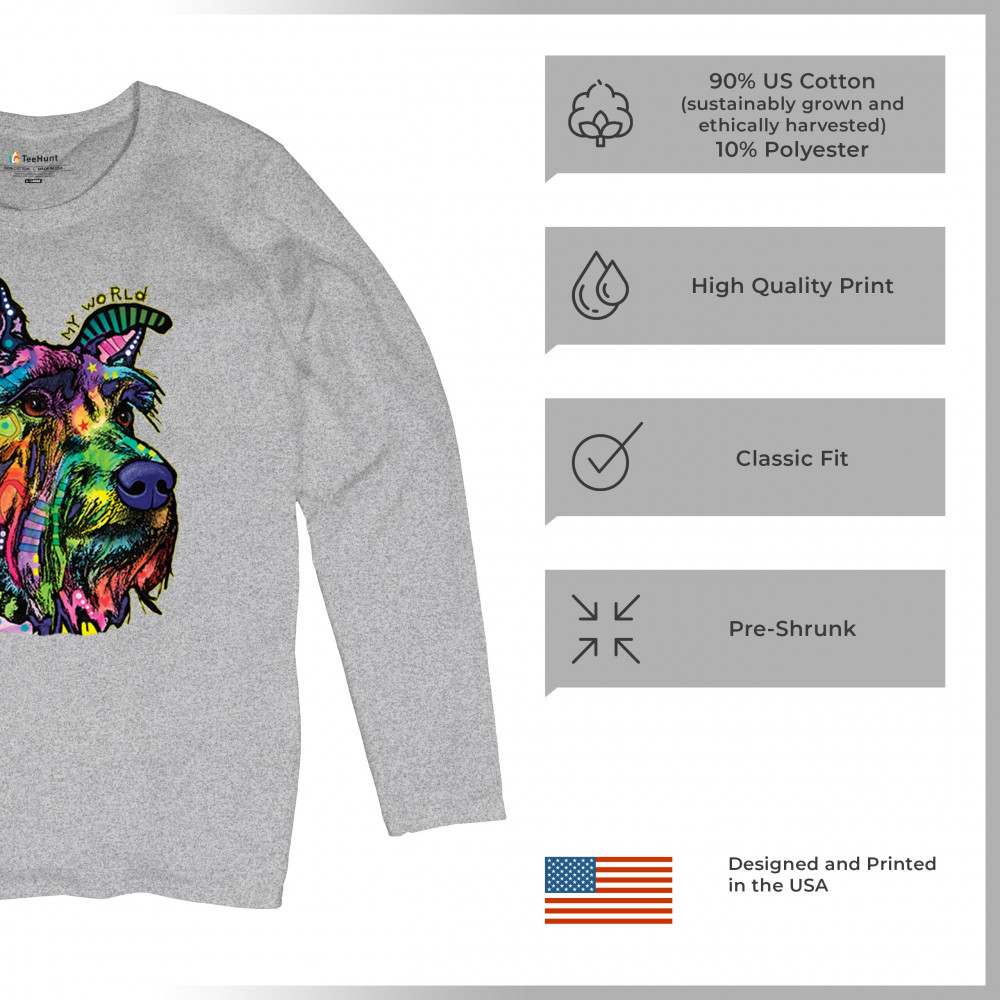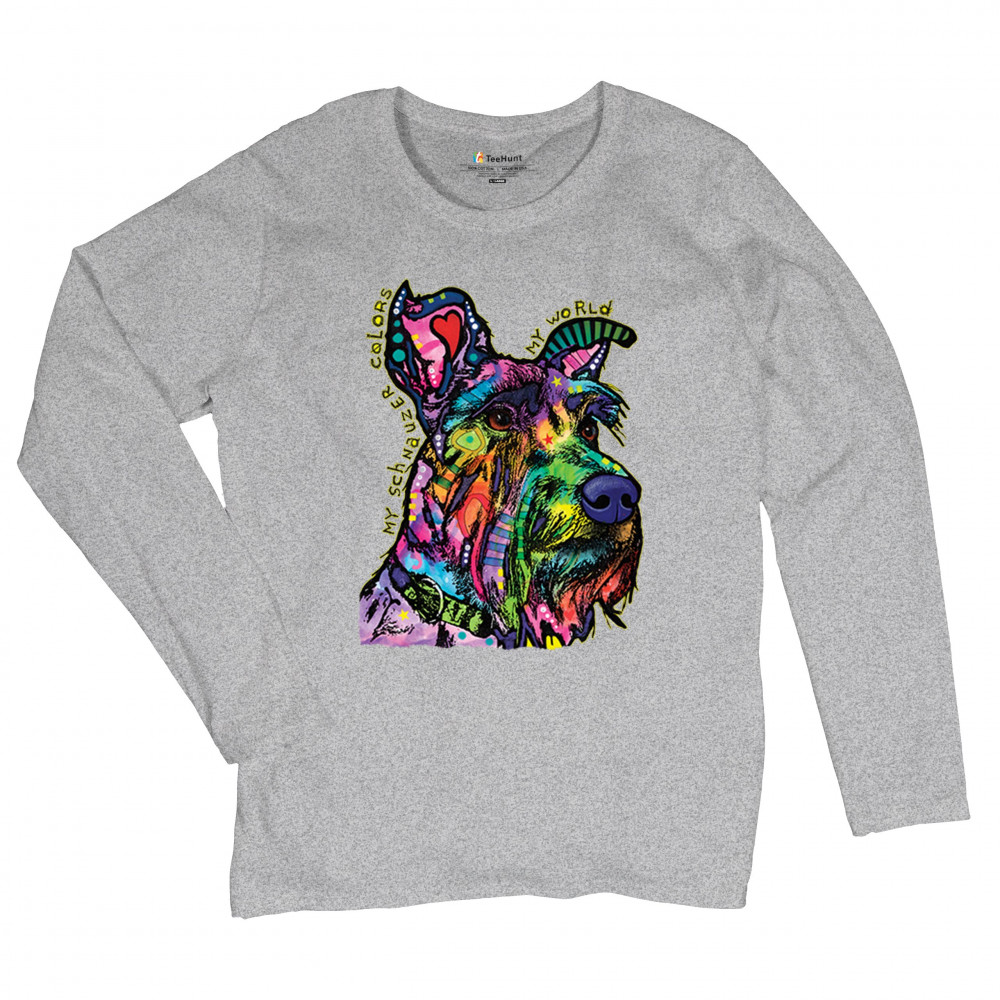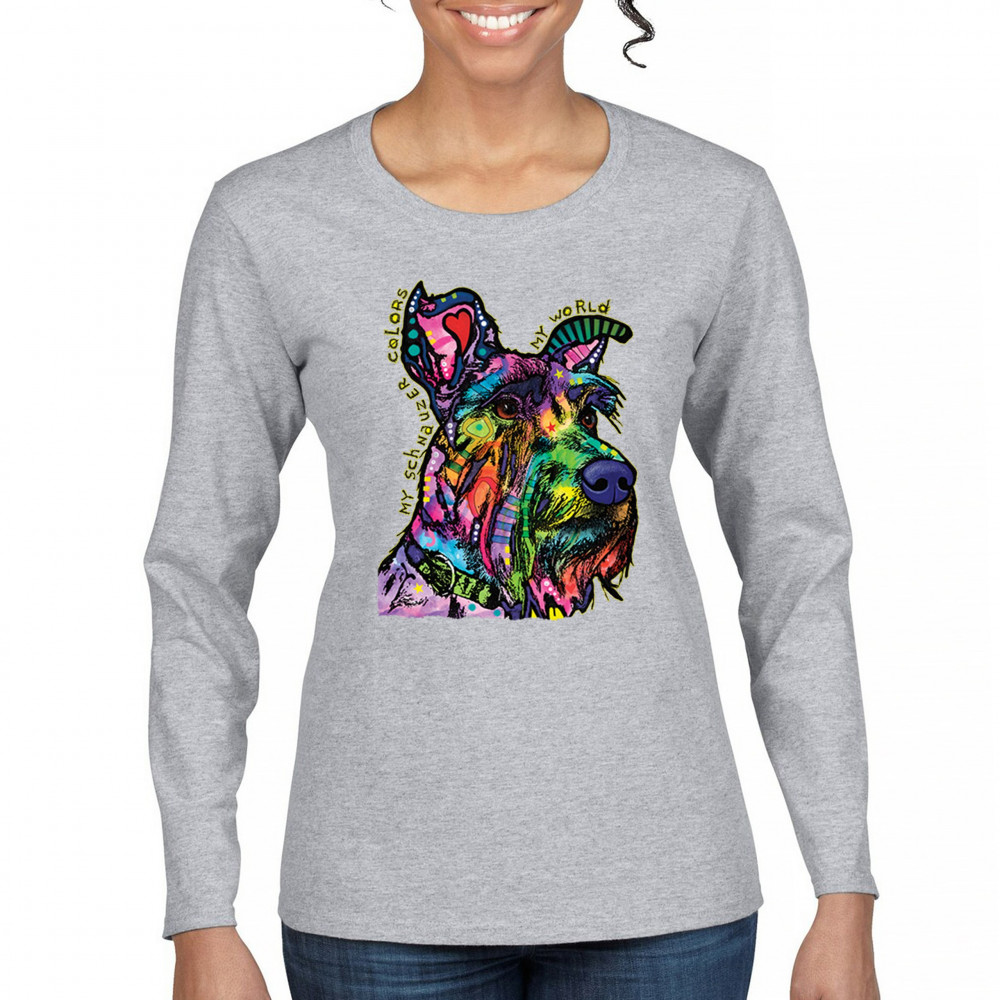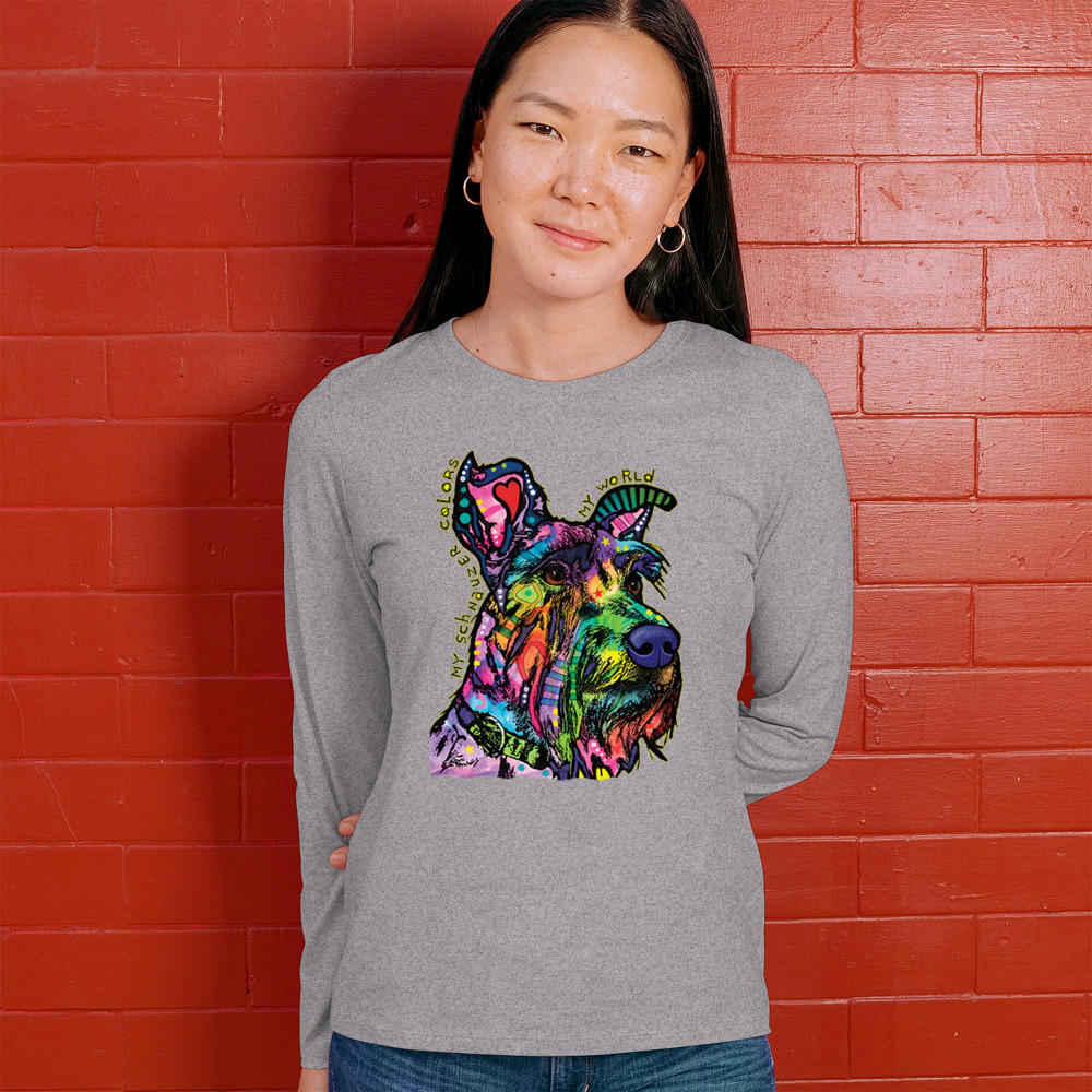 MY SCHNAUZER COLORS MY WORLD women's long sleeve t-shirt dean russo pet dog mom gray