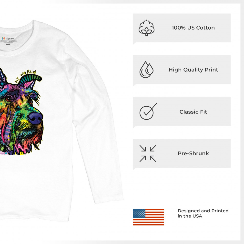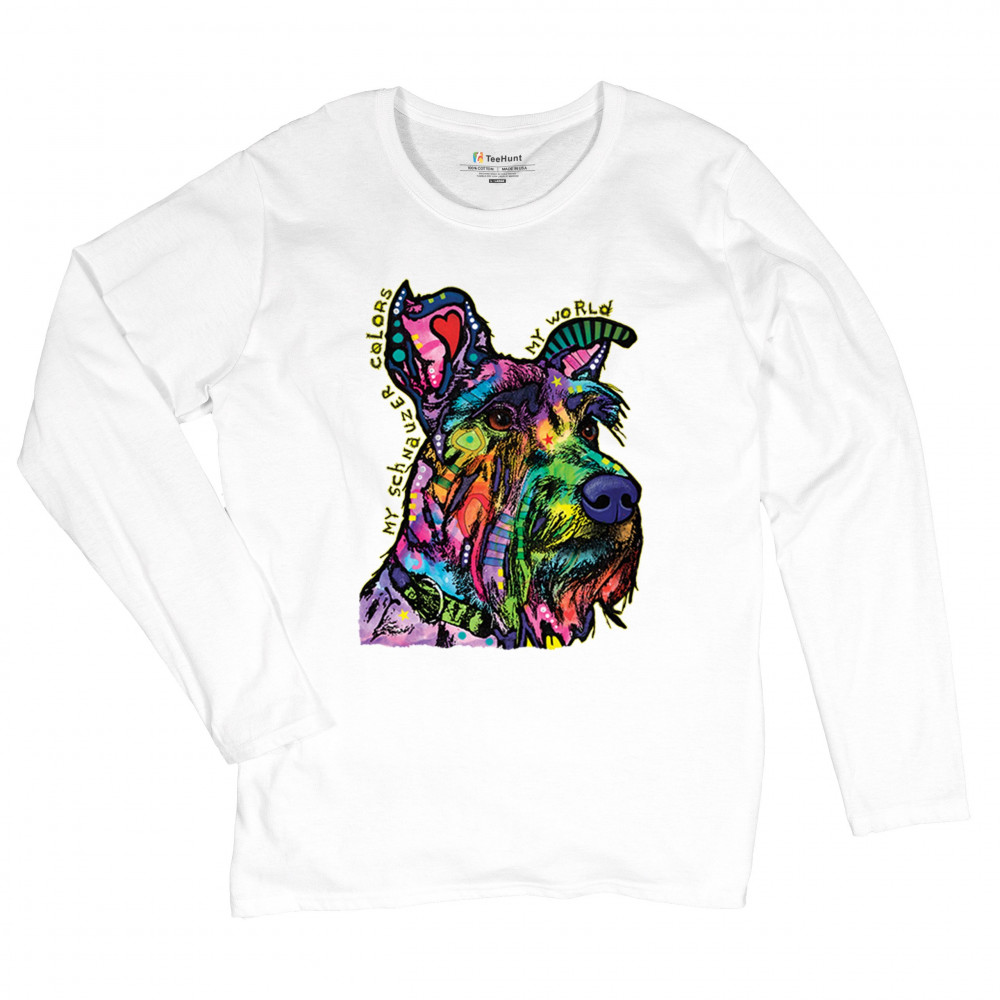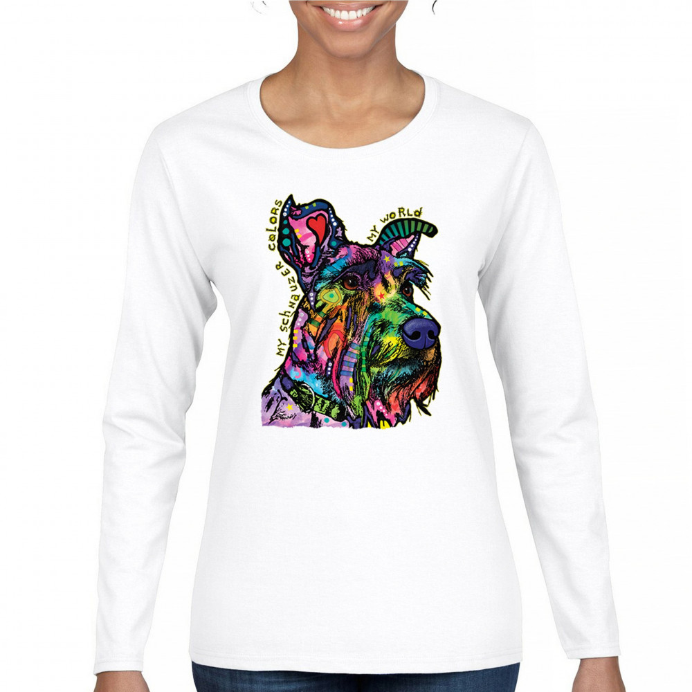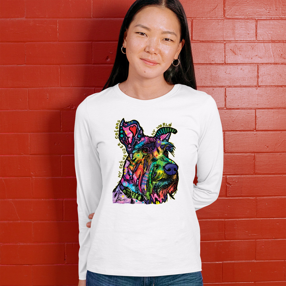 MY SCHNAUZER COLORS MY WORLD women's long sleeve t-shirt dean russo pet dog mom white