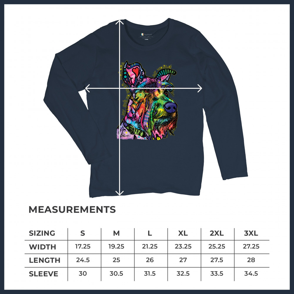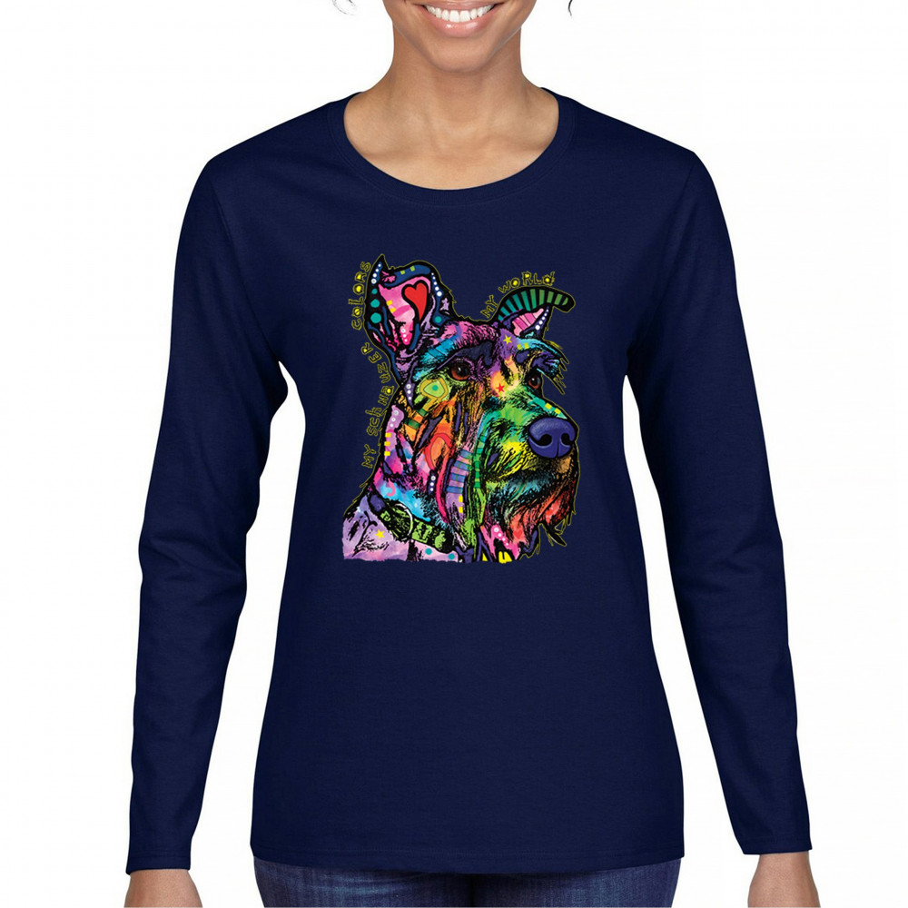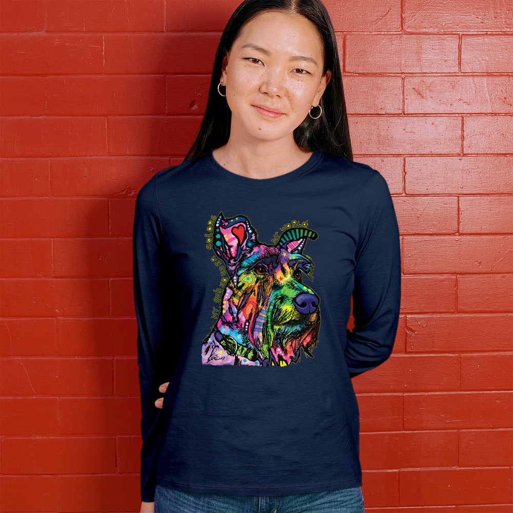 MY SCHNAUZER COLORS MY WORLD women's long sleeve t-shirt dean russo pet dog mom navy blue