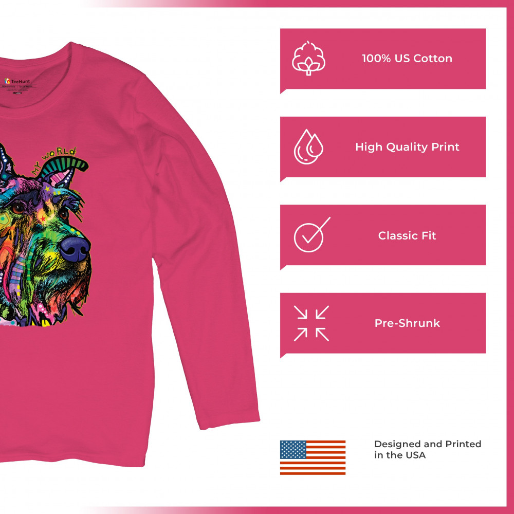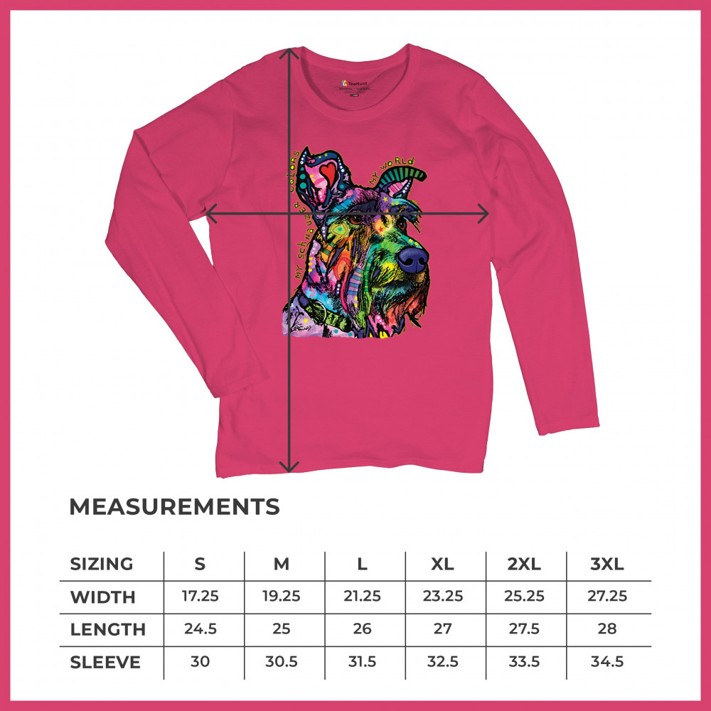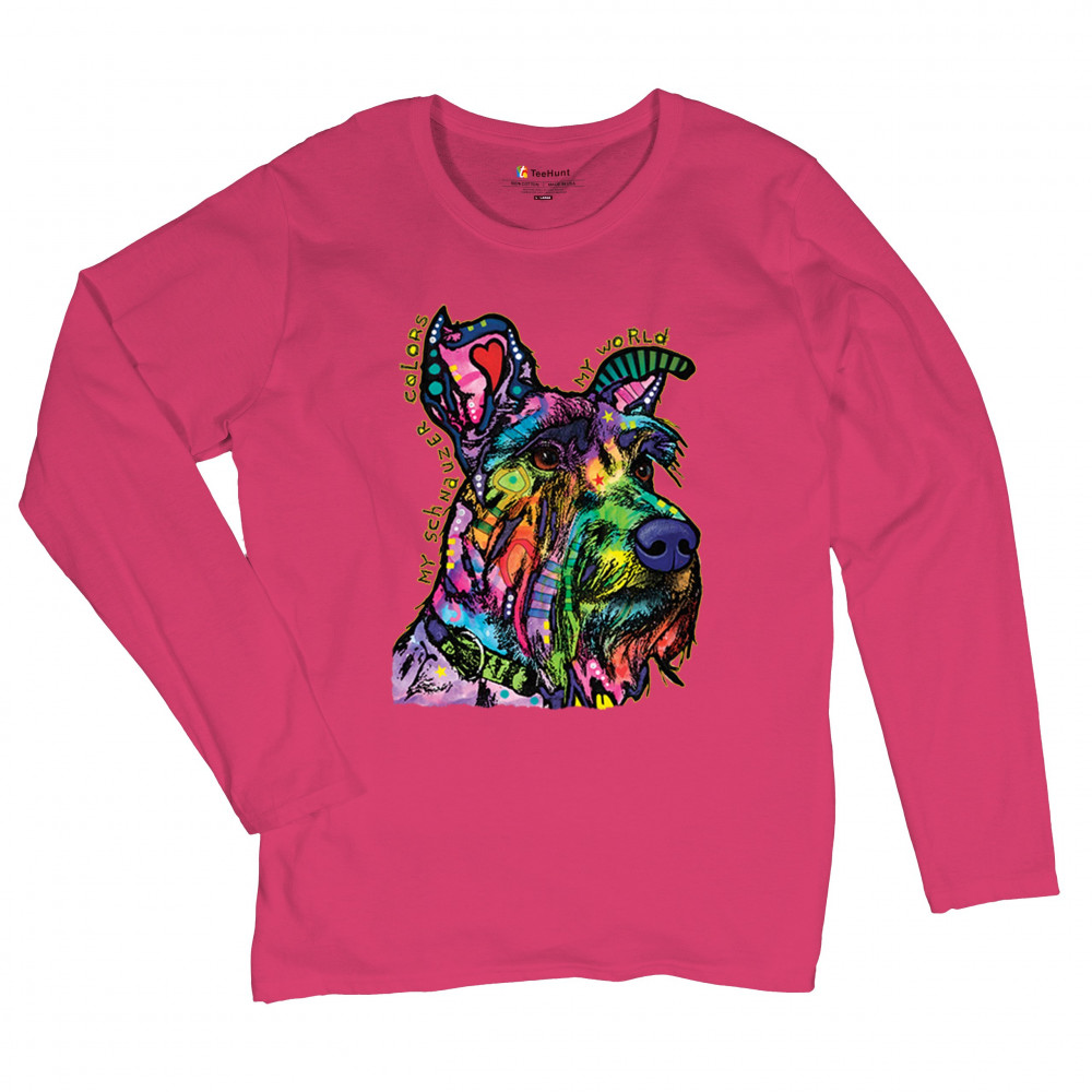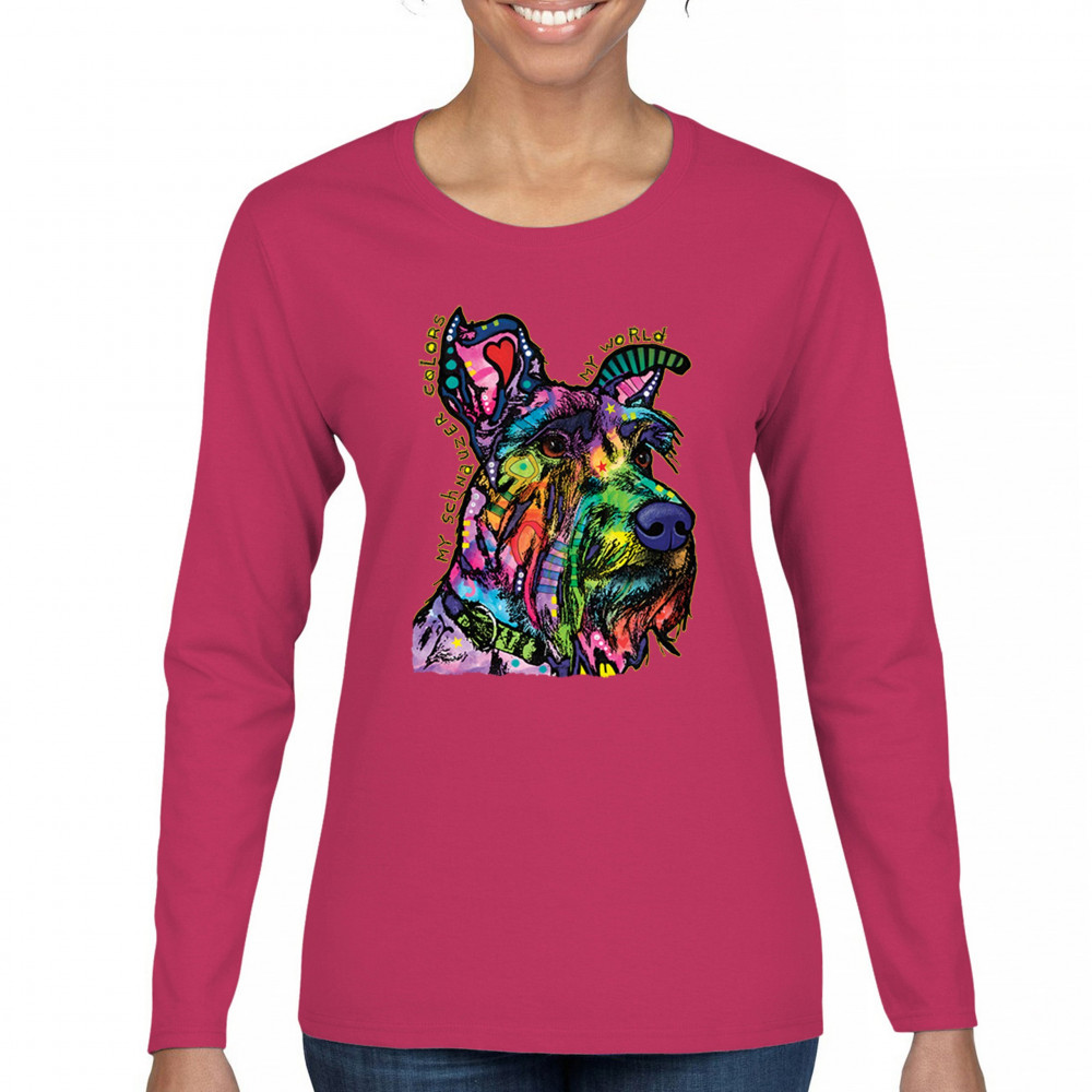 MY SCHNAUZER COLORS MY WORLD women's long sleeve t-shirt dean russo pet dog mom pink
