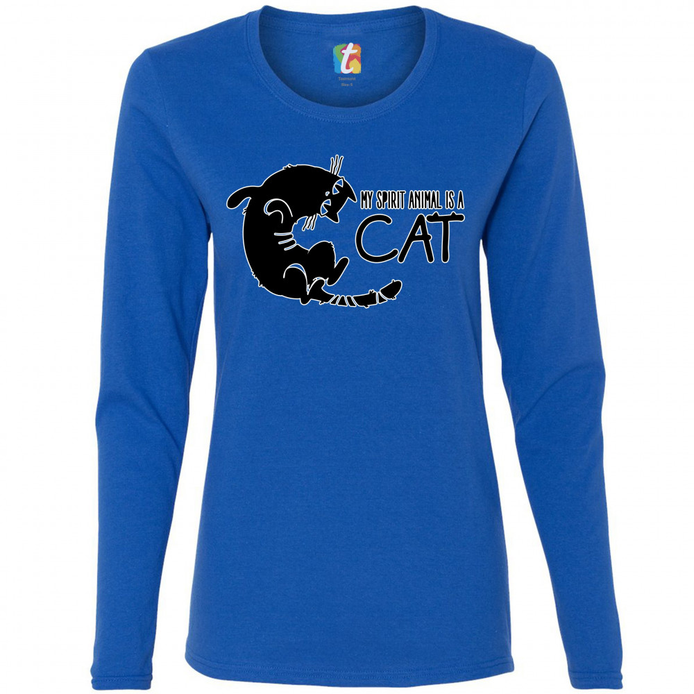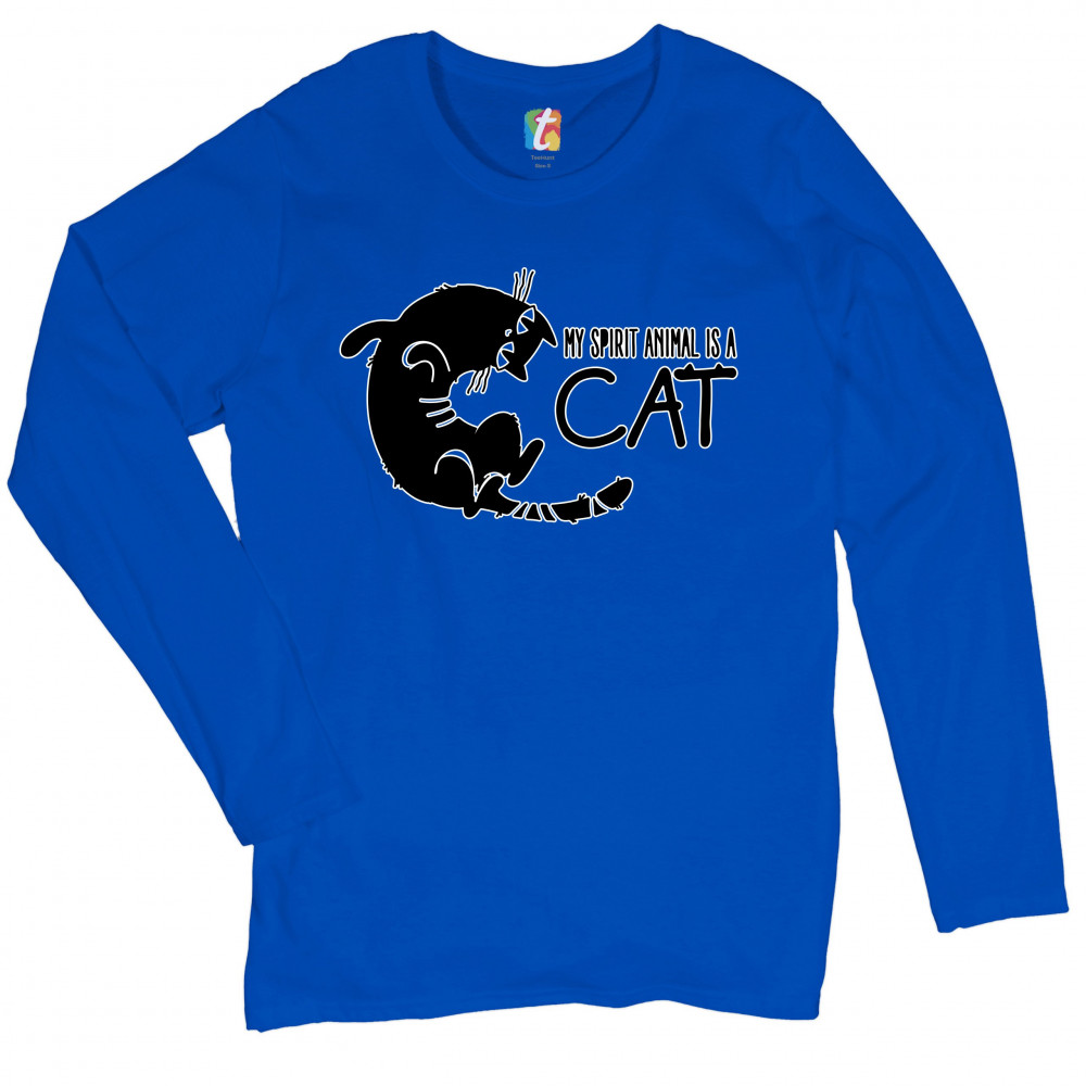 MY SPIRIT ANIMAL IS A CAT women's long sleeve t-shirt cute kitty funny kitten royal blue