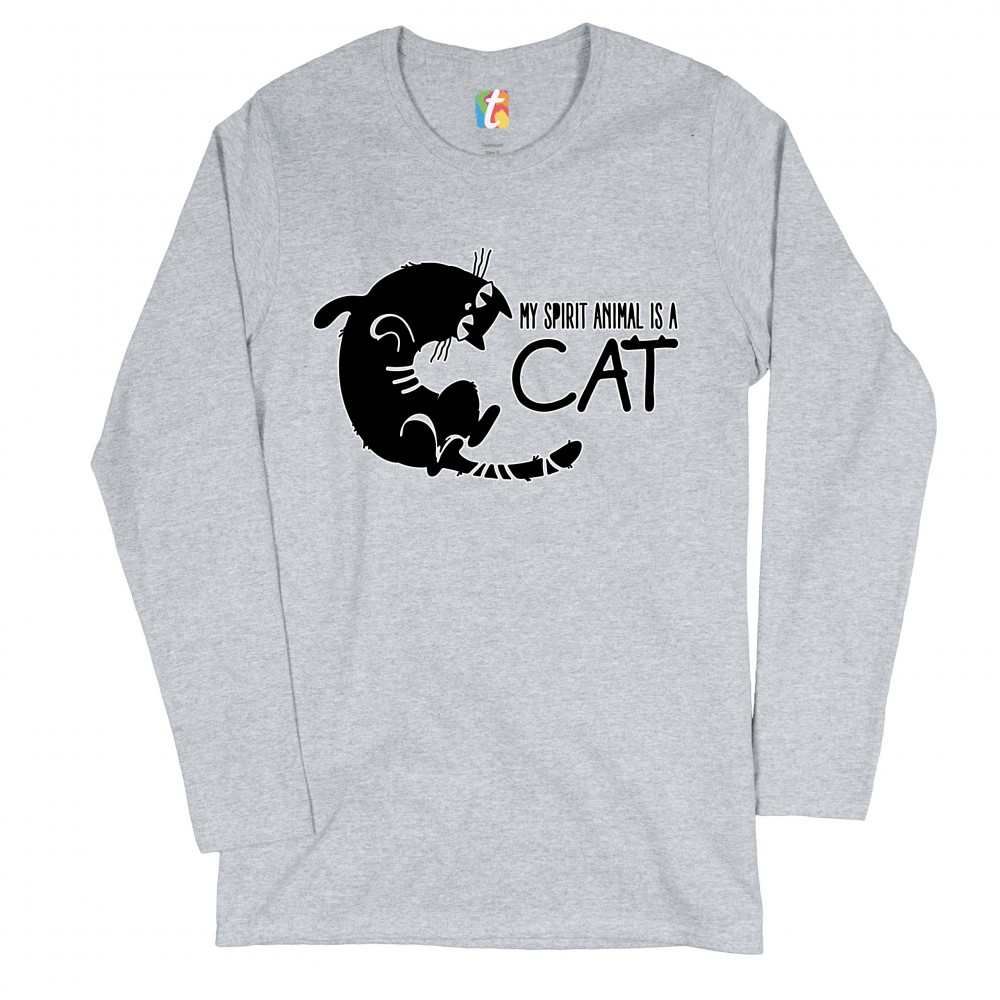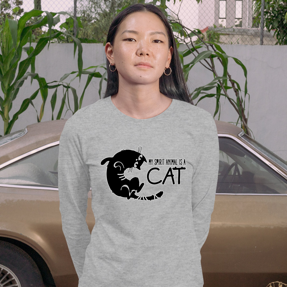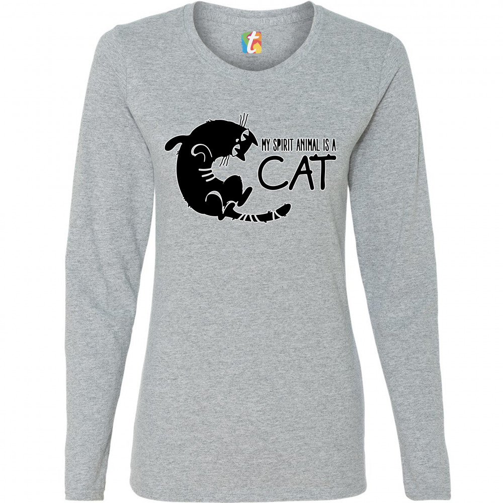 MY SPIRIT ANIMAL IS A CAT women's long sleeve t-shirt cute kitty funny kitten gray