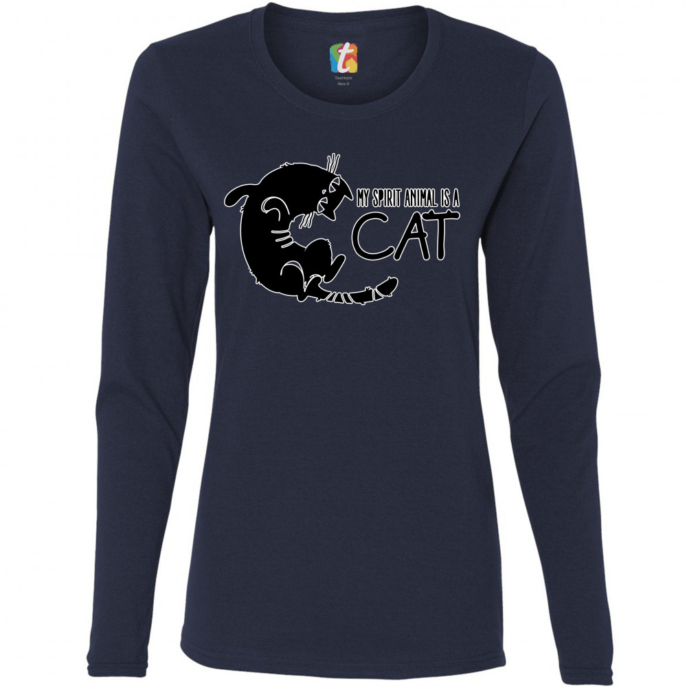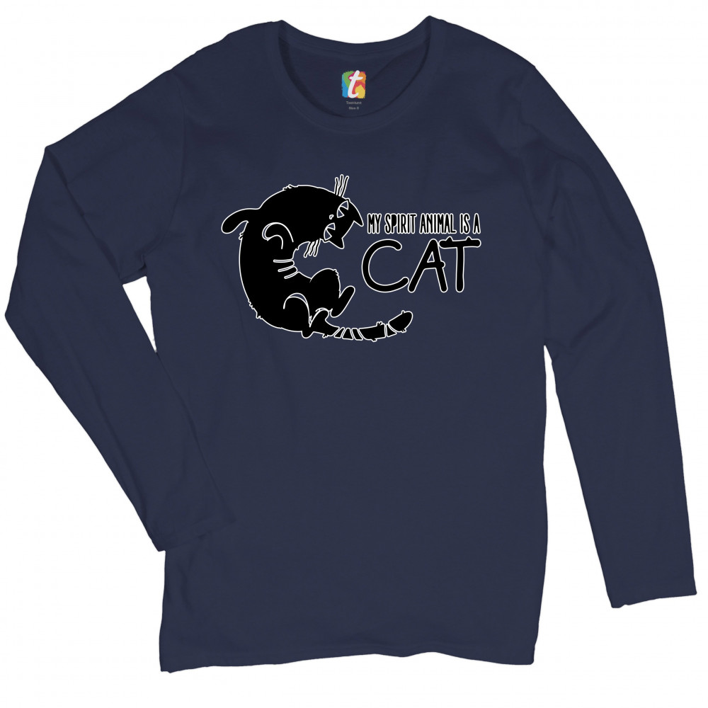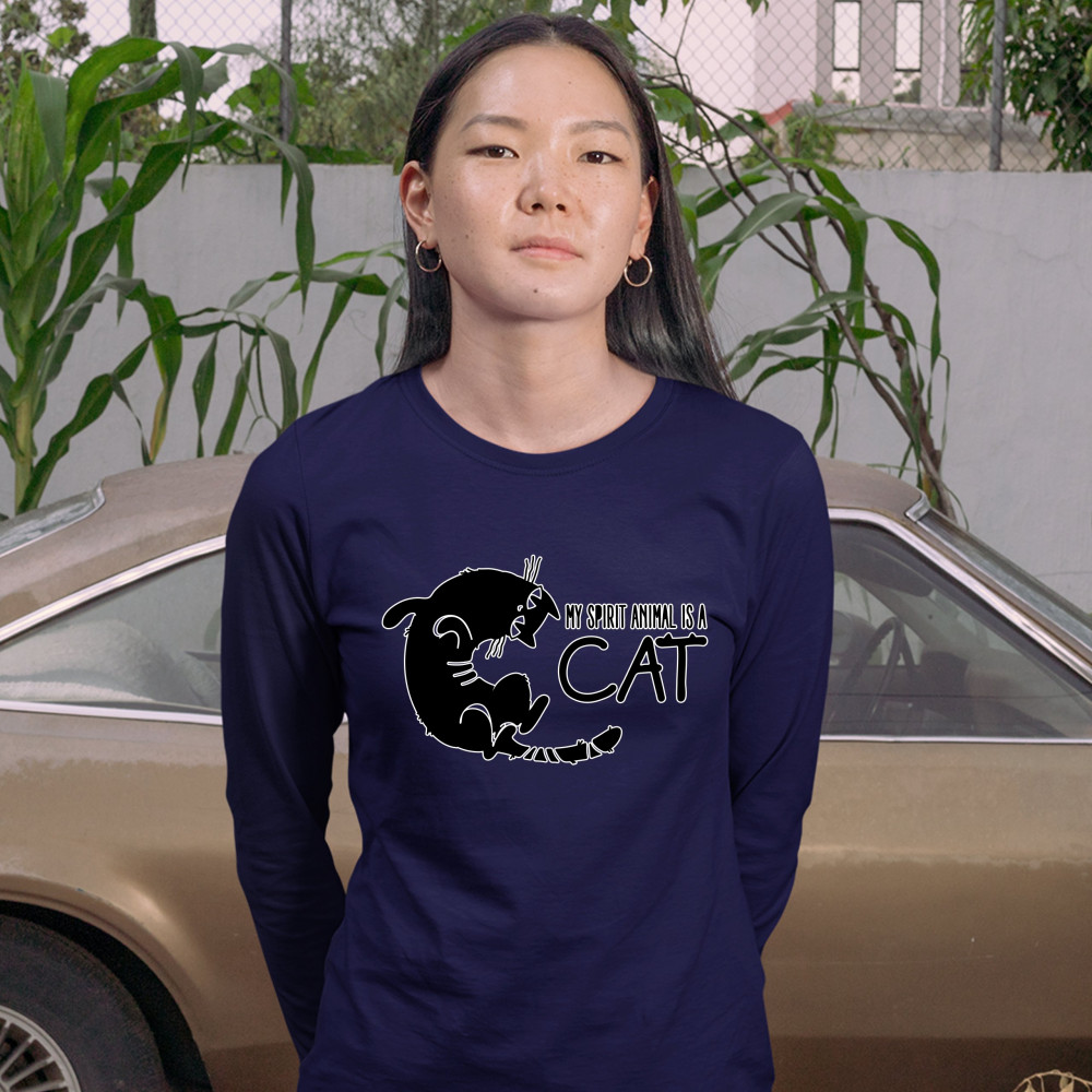 MY SPIRIT ANIMAL IS A CAT women's long sleeve t-shirt cute kitty funny kitten navy blue