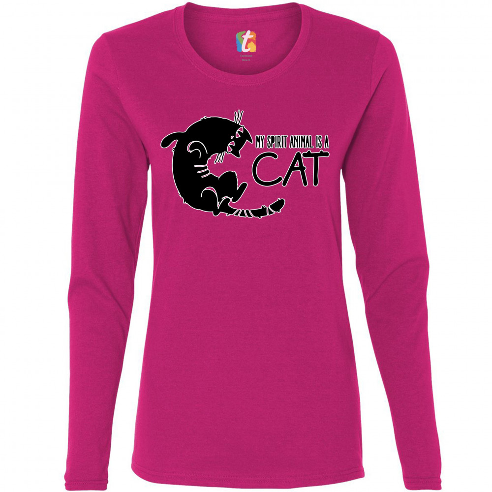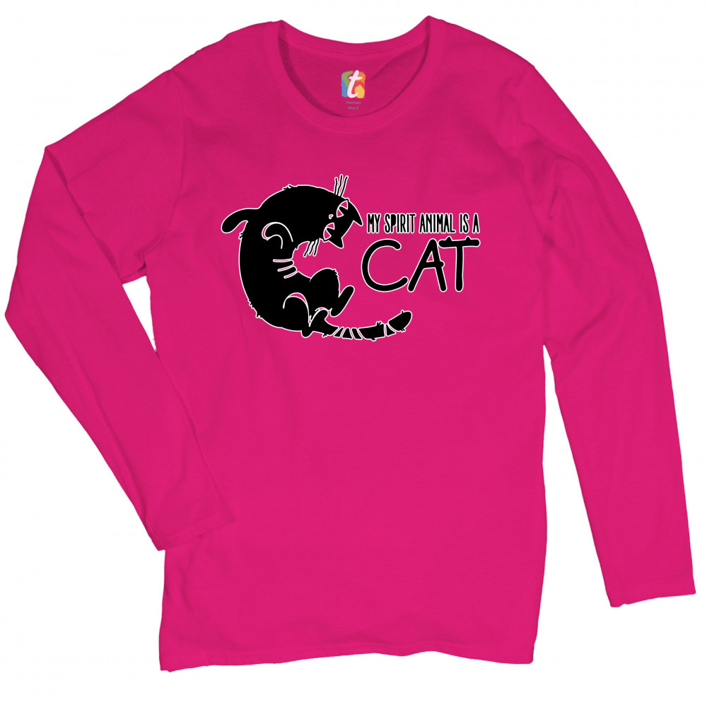 MY SPIRIT ANIMAL IS A CAT women's long sleeve t-shirt cute kitty funny kitten pink