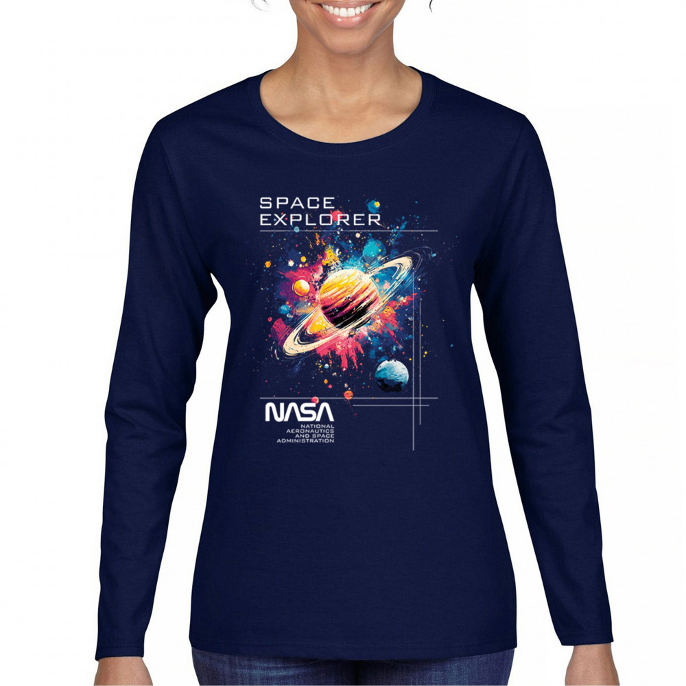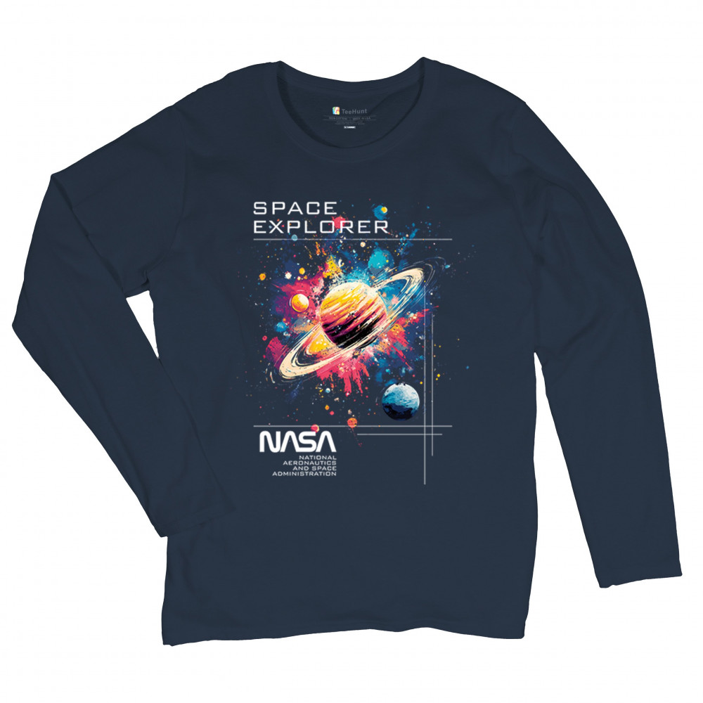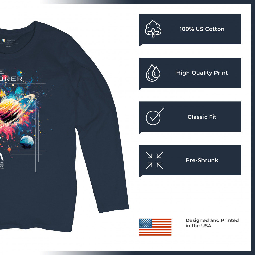 Bold and inspiring, this NASA Space Explorer design features Saturn in a cosmic paint splash with official branding. Ideal for fans of the Apollo program, moon landings, rocket launch history, and vintage NASA aesthetics. A great fit for space travel lovers, cosmic dreamers, and proud supporters of American exploration.