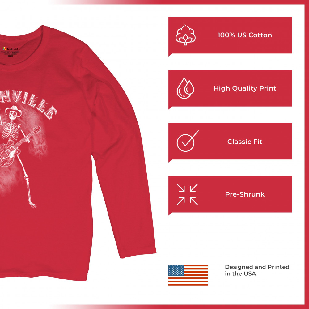 Bold skeleton cowboy design with Nashville grit and country rock vibes. Perfect for fans of music, guitars, and rebel southern style.