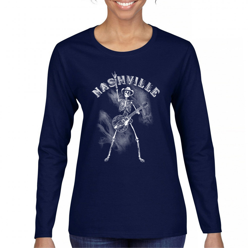 Bold skeleton cowboy design with Nashville grit and country rock vibes. Perfect for fans of music, guitars, and rebel southern style.