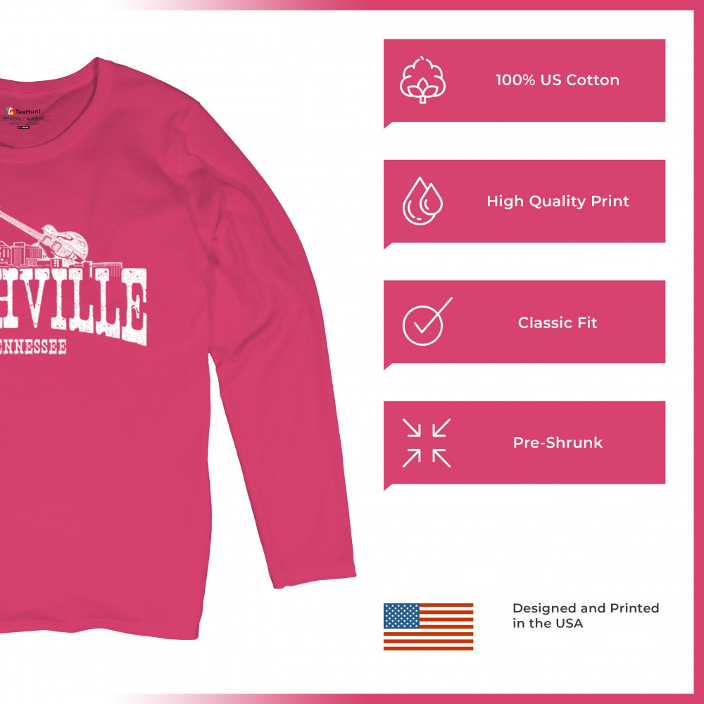 Vintage Nashville skyline and guitar design perfect for music fans, tourists, and proud Tennesseans. Ideal for concerts and city adventures.