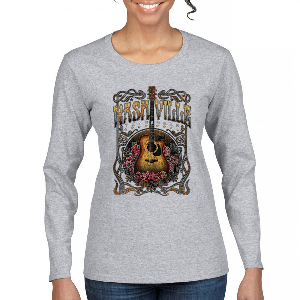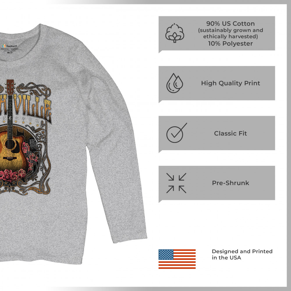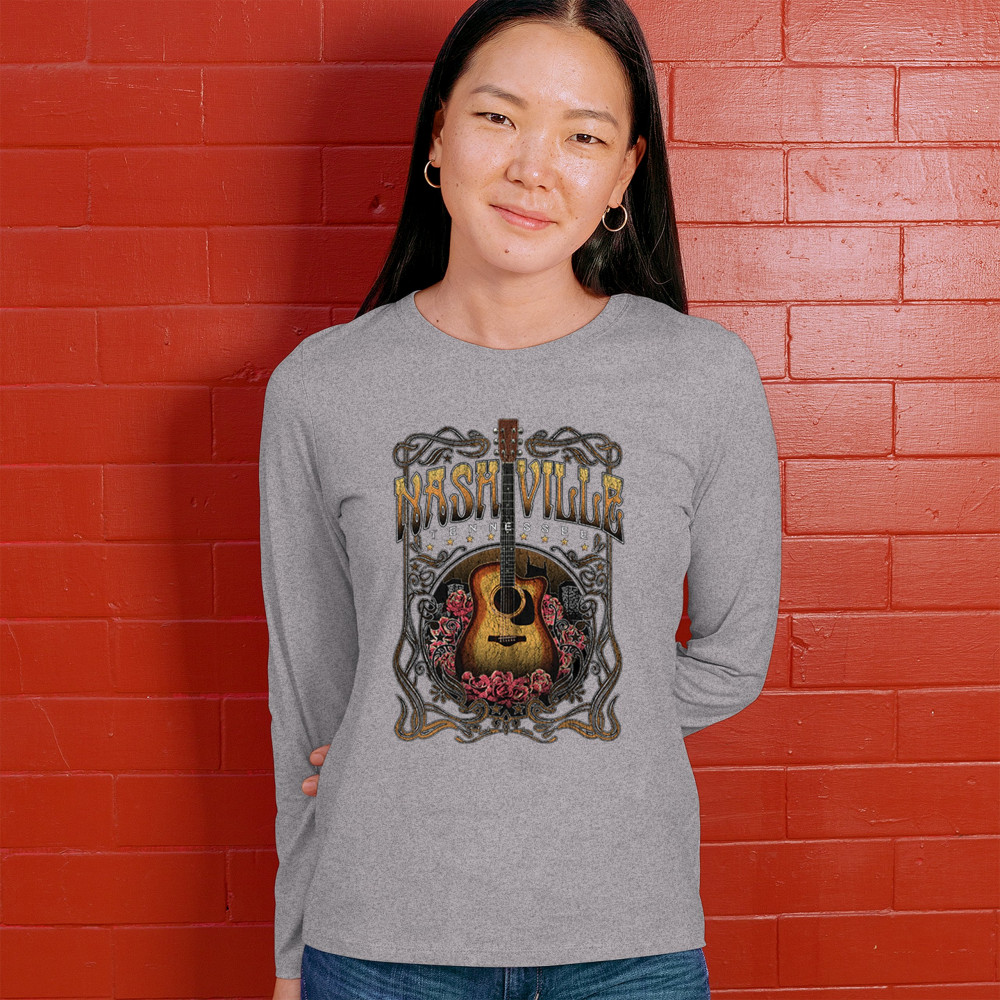 Vintage Nashville Tennessee design with rustic guitar and roses. Great for concerts, country music fans, road trips, and souvenir wear.