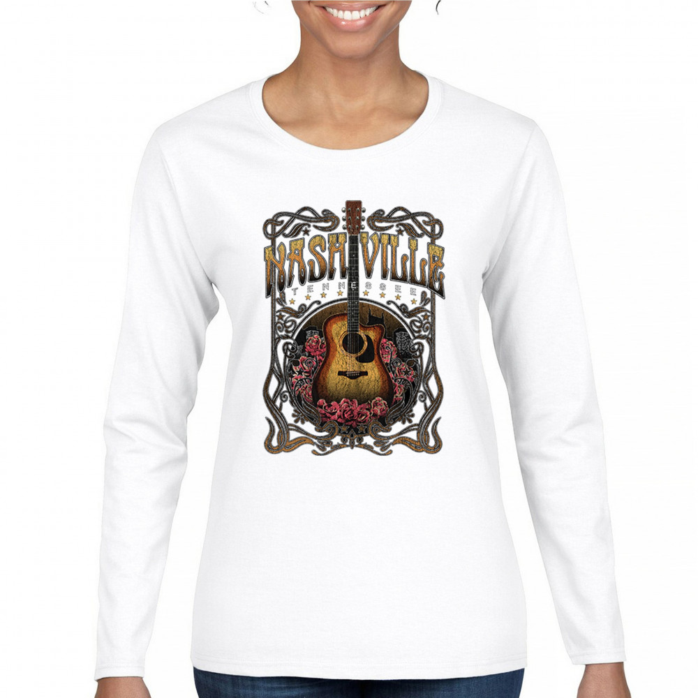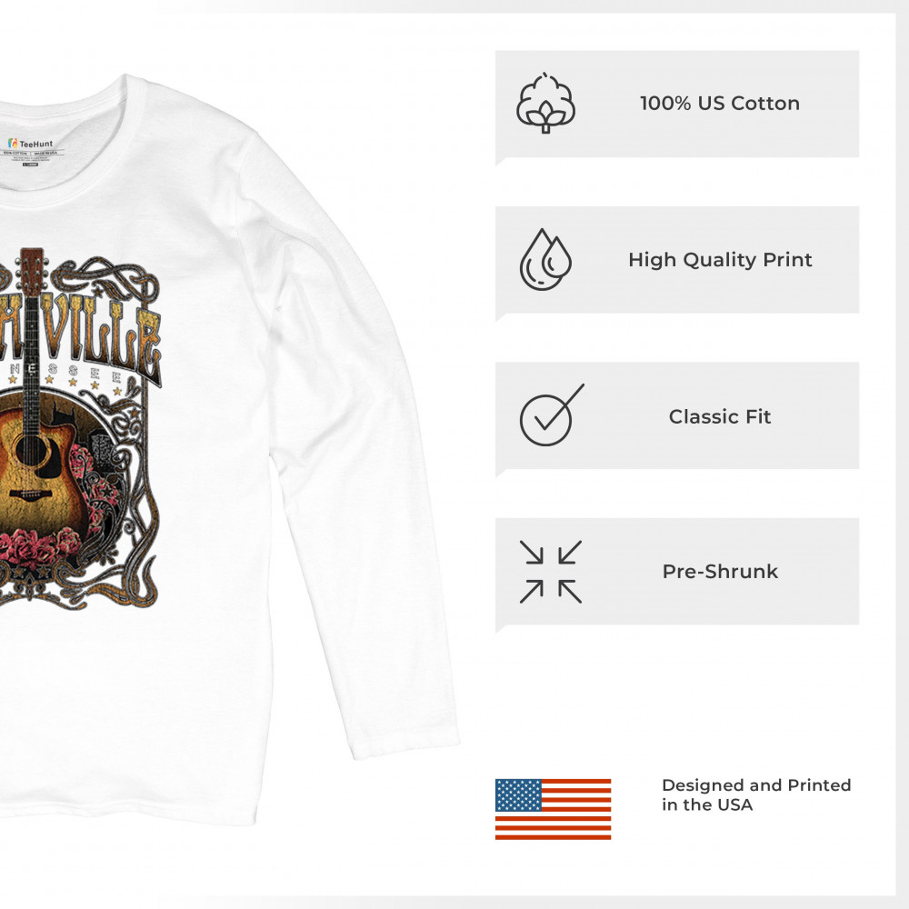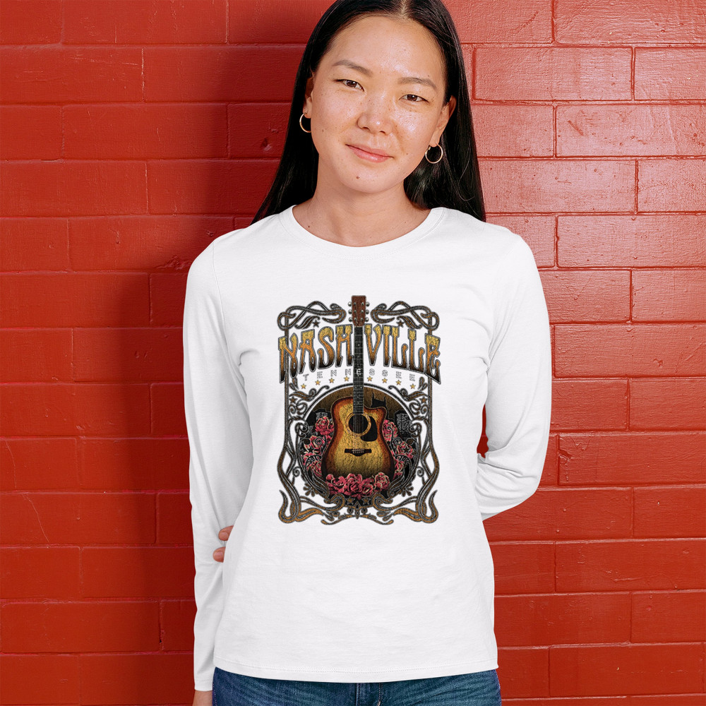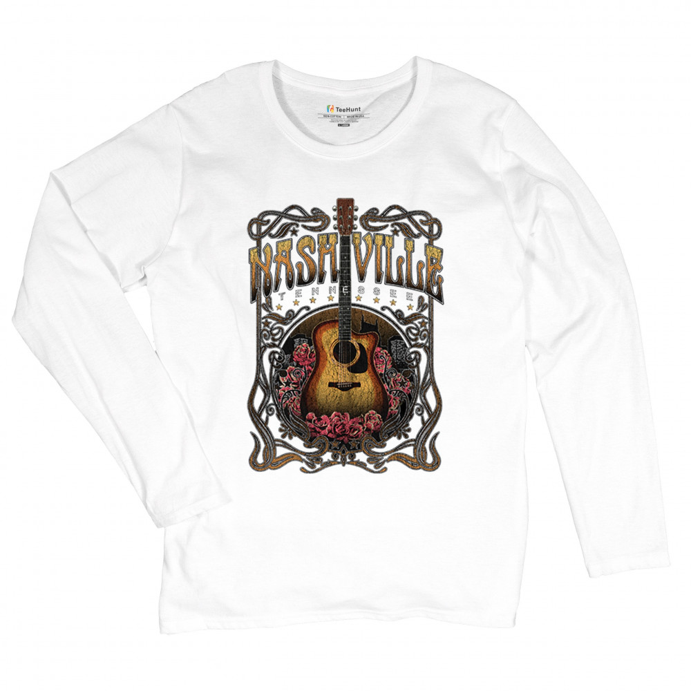 Vintage Nashville Tennessee design with rustic guitar and roses. Great for concerts, country music fans, road trips, and souvenir wear.