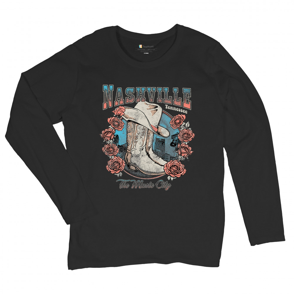 Show Nashville pride with a vintage cowgirl boots and hat design that blends country, western style, floral beauty, and southern grit.