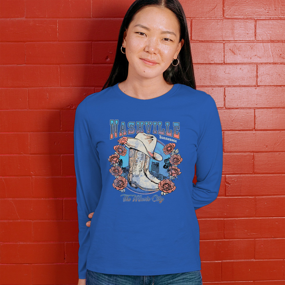 Show Nashville pride with a vintage cowgirl boots and hat design that blends country, western style, floral beauty, and southern grit.