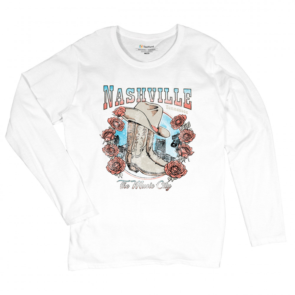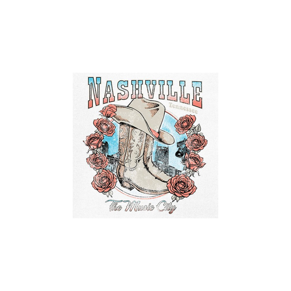 Show Nashville pride with a vintage cowgirl boots and hat design that blends country, western style, floral beauty, and southern grit.