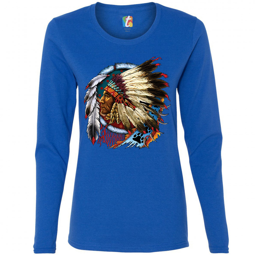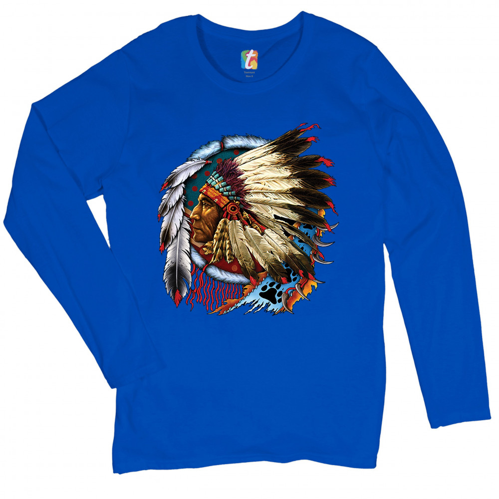 NATIVE AMERICAN CHIEF women's long sleeve t-shirt war bonnet dreamcatcher royal blue