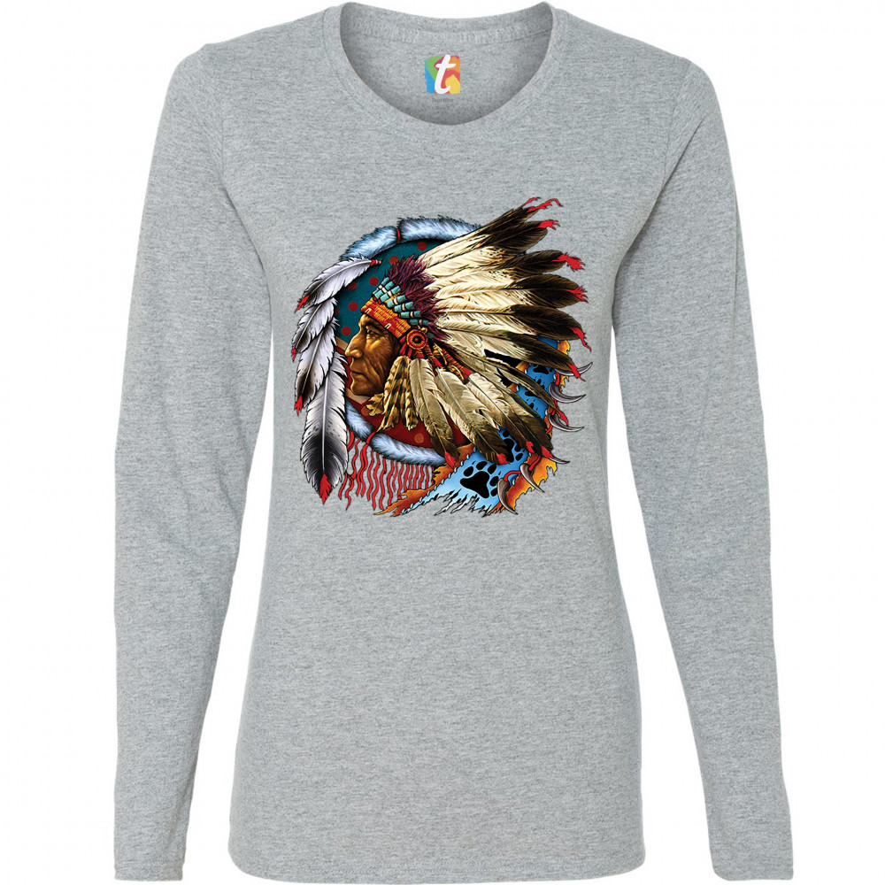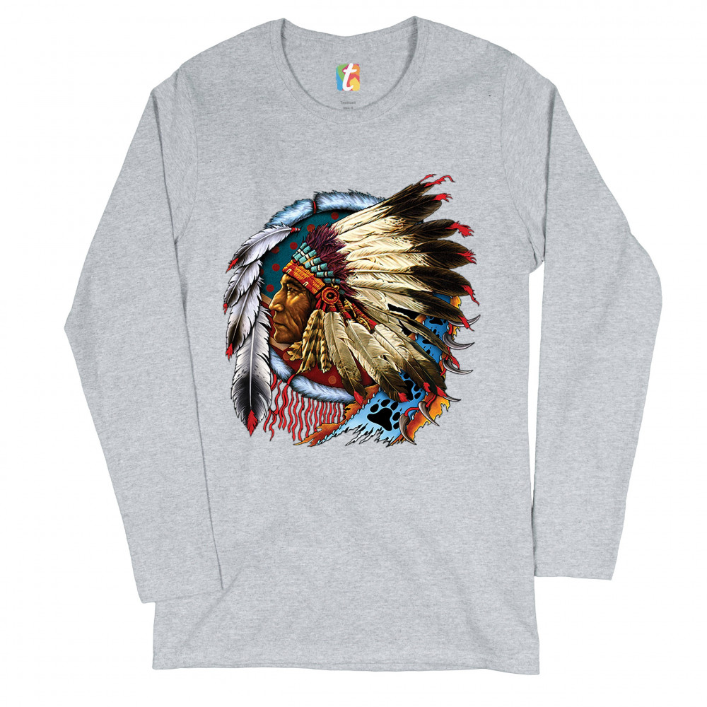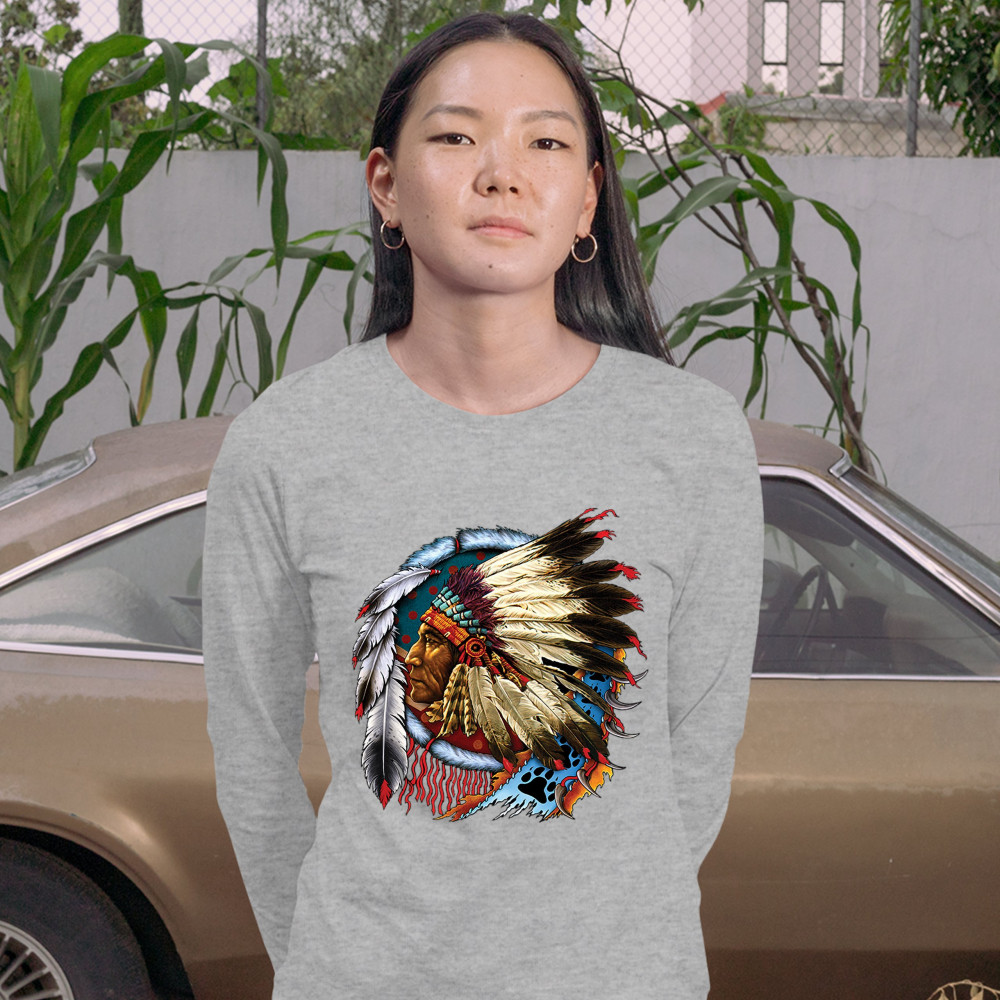 NATIVE AMERICAN CHIEF women's long sleeve t-shirt war bonnet dreamcatcher gray