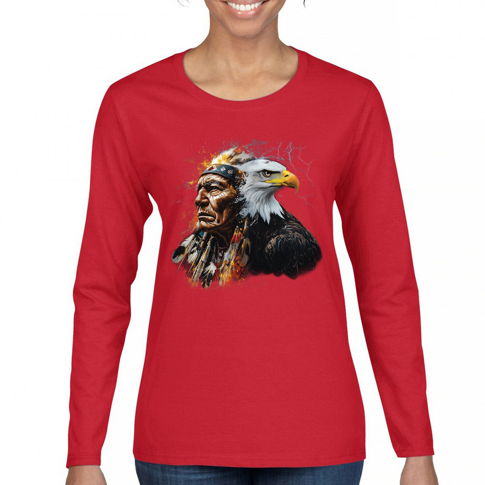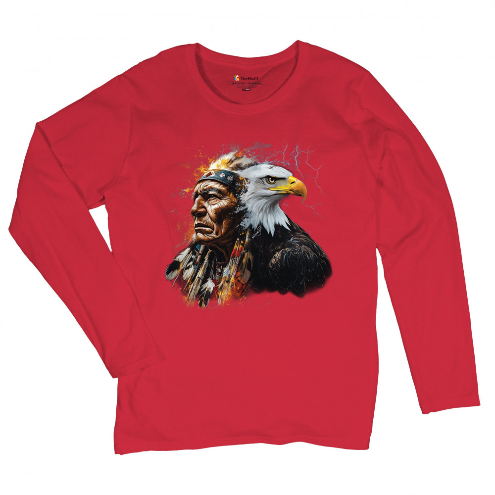 Bold tribal totem design with Native chief, eagle, lightning, and fire. A fierce blend of spirit, power, and cultural pride in one image.