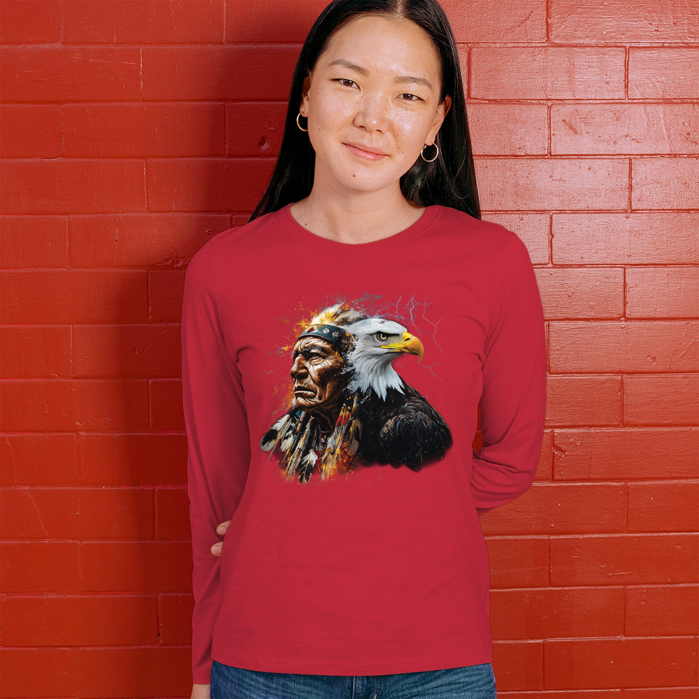 This electrifying design showcases a Native American chief with a bold bald eagle, surrounded by lightning and fire. It blends spiritual animal symbolism with cultural strength and pride. Ideal for admirers of tribal heritage, ancestral energy, and fierce visual storytelling through nature and tradition.