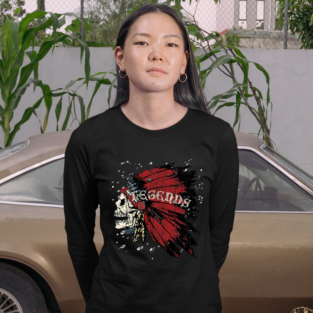 NATIVE AMERICAN LEGENDS women's long sleeve t-shirt skull war bonnet headdress black