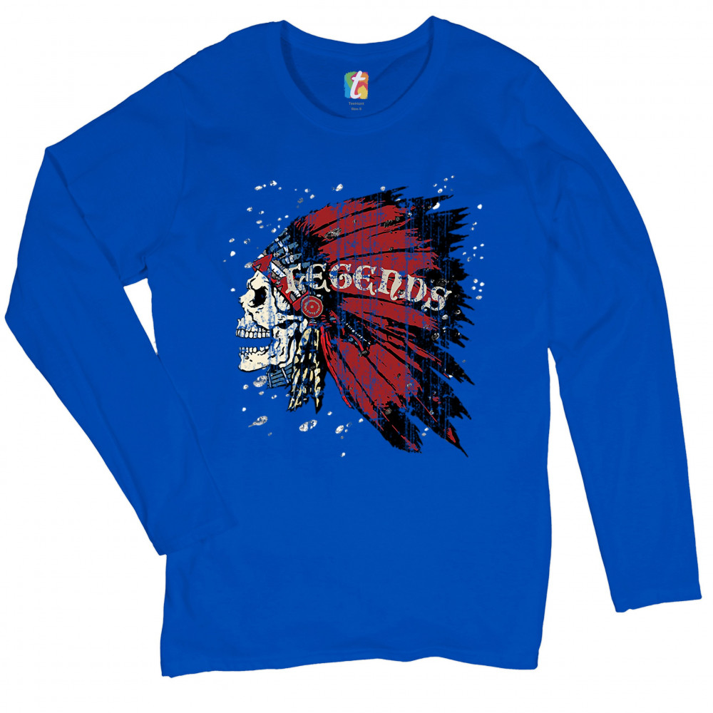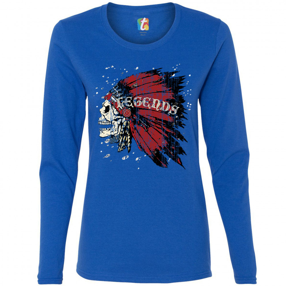 NATIVE AMERICAN LEGENDS women's long sleeve t-shirt skull war bonnet headdress royal blue
