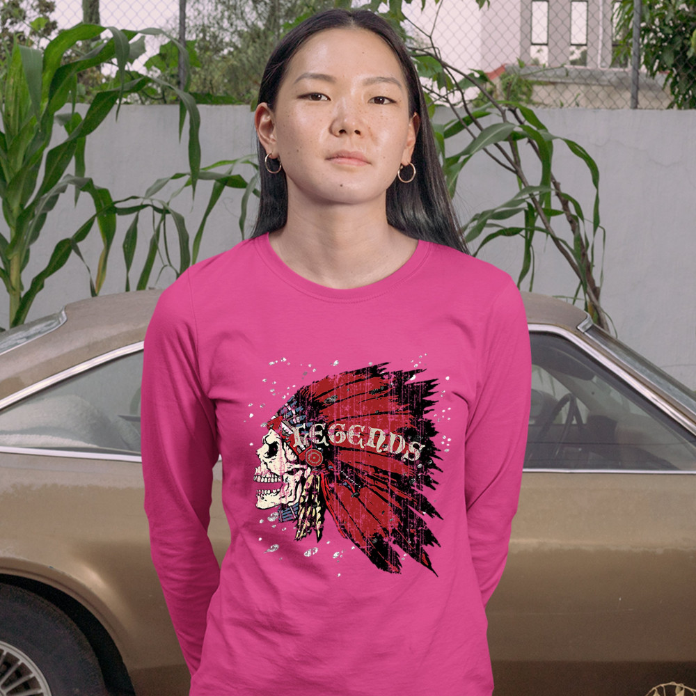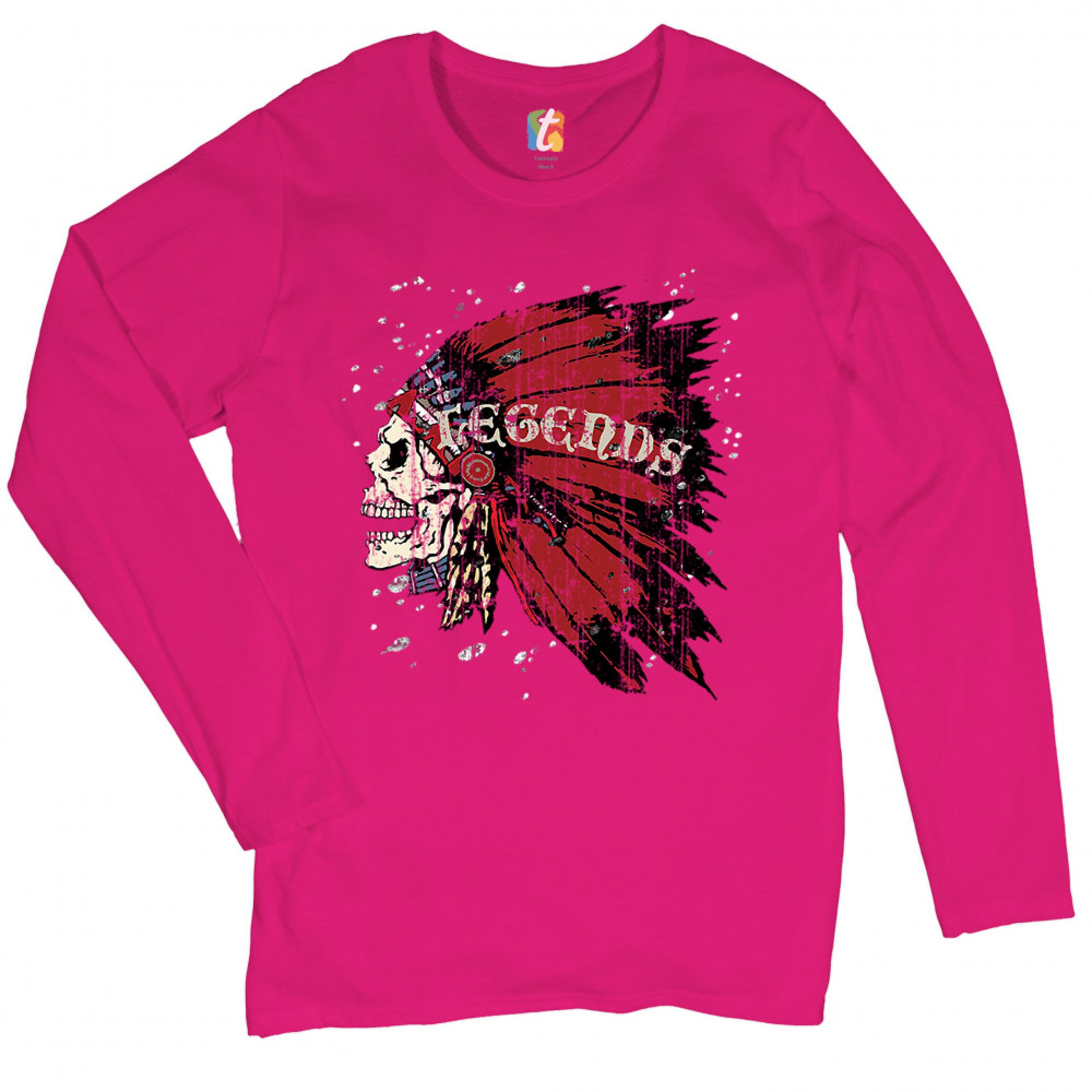 NATIVE AMERICAN LEGENDS women's long sleeve t-shirt skull war bonnet headdress pink
