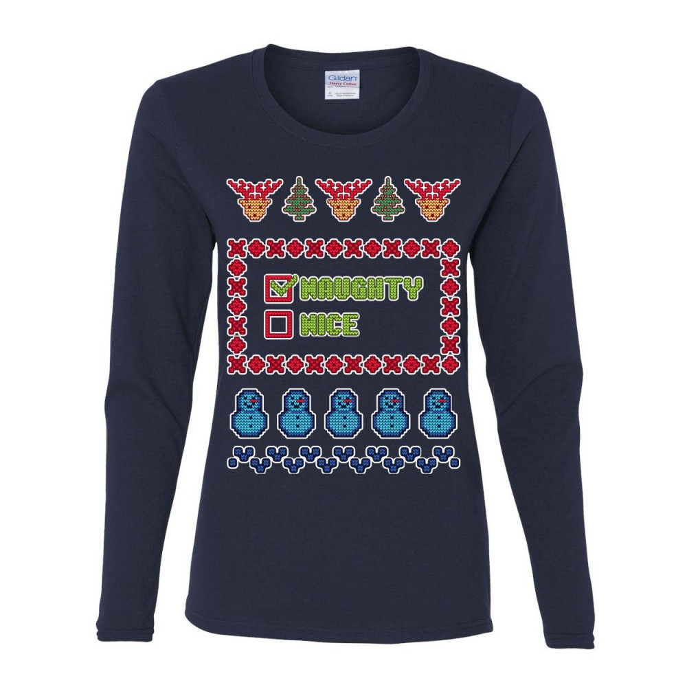 NAUGHTY OR NICE ugly sweater women's long sleeve tee christmas xmas holiday list navy blue