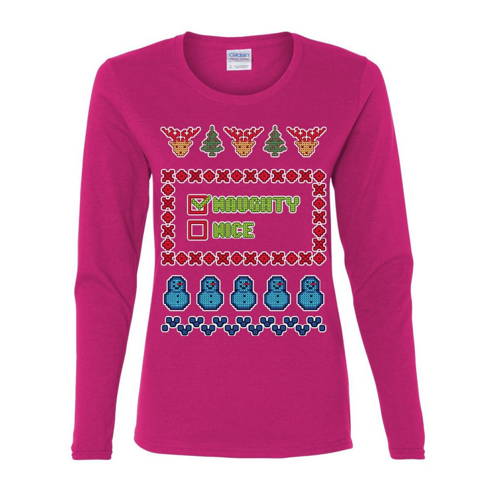 NAUGHTY OR NICE ugly sweater women's long sleeve tee christmas xmas holiday list hot pink