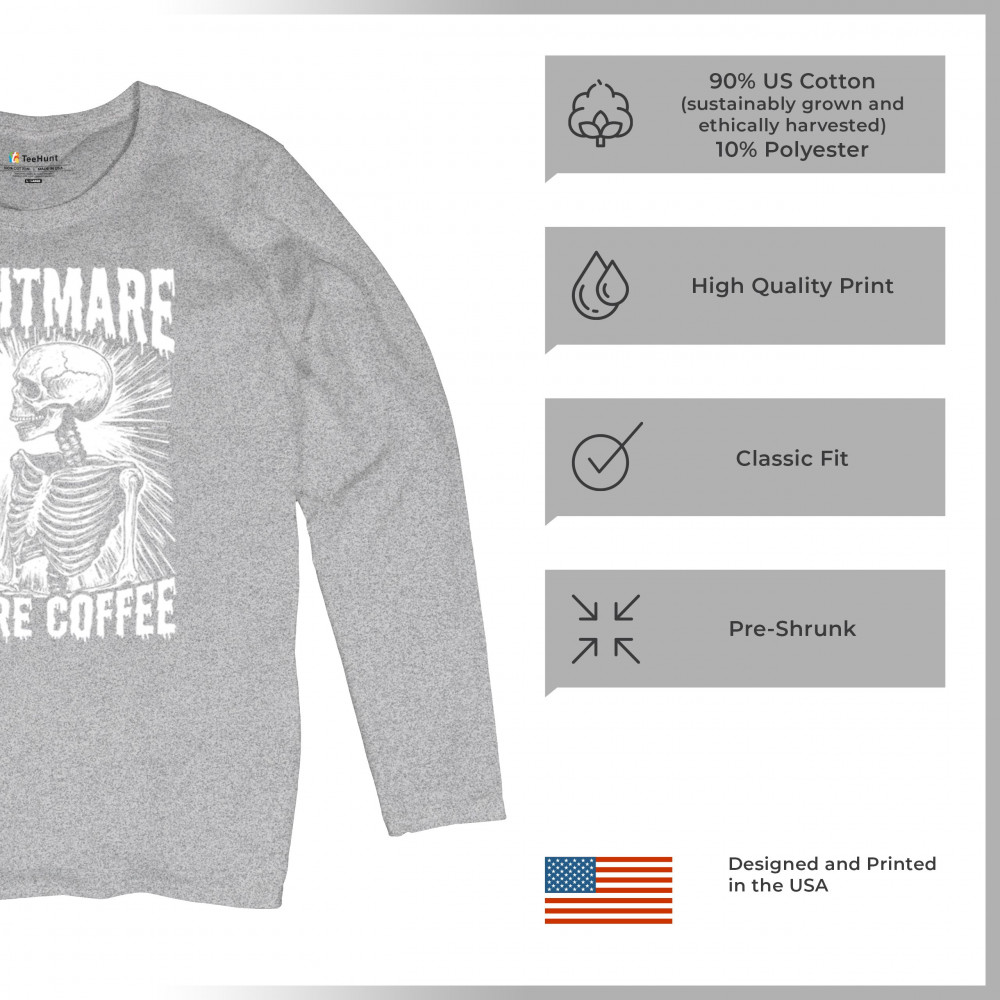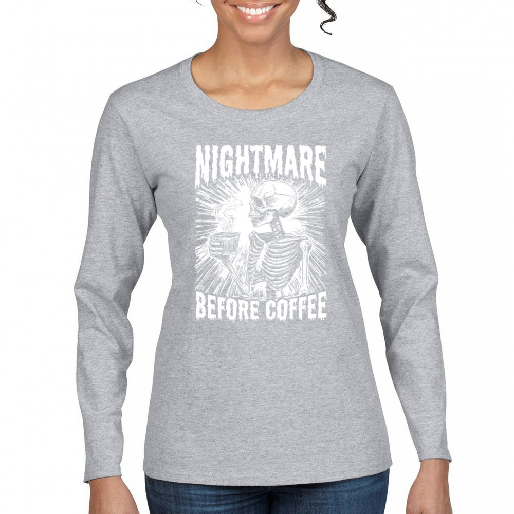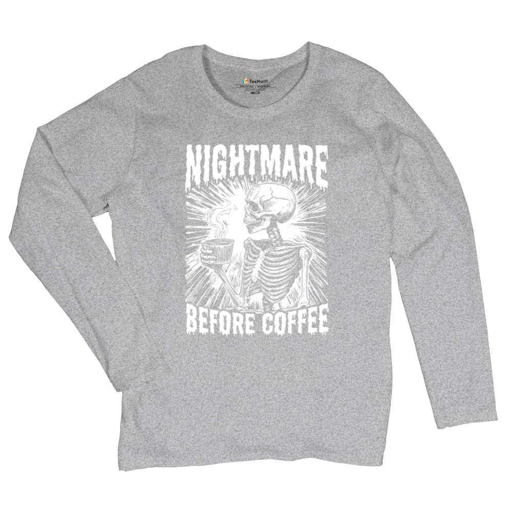 Show off your love for coffee with this quirky "Nightmare Before Coffee" skeleton design, blending humor and gothic style for caffeine lovers.