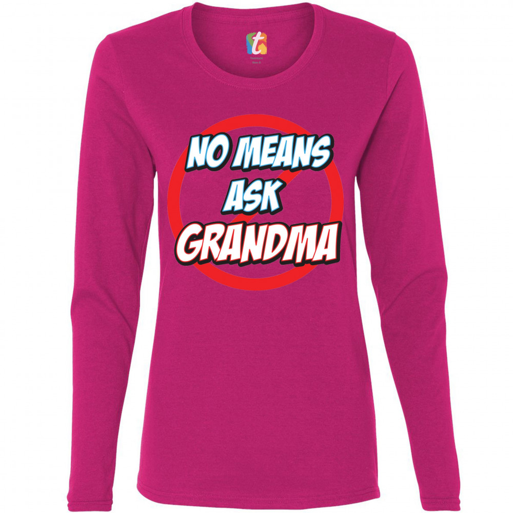 NO MEANS ASK GRANDMA women's long sleeve t-shirt granny mother's day funny nana pink