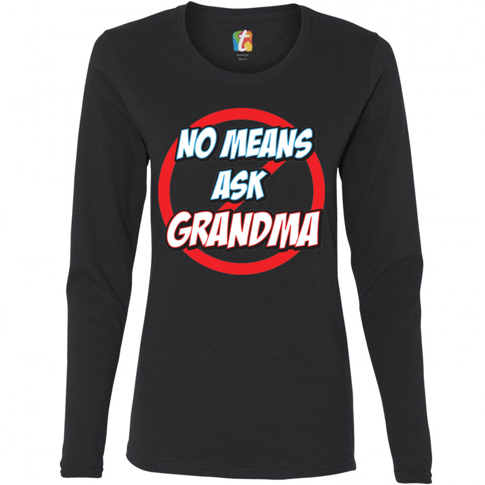 NO MEANS ASK GRANDMA women's long sleeve t-shirt granny mother's day funny nana black