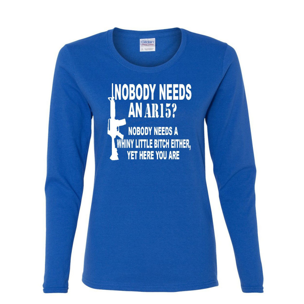 NOBODY NEEDS AN AR15? women's long sleeve t-shirt funny offensive humor political firearms gun rights royal blue