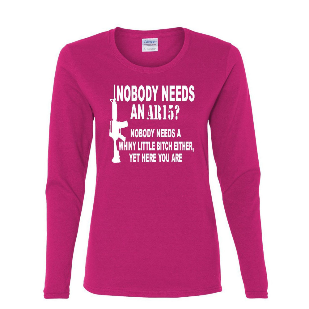 NOBODY NEEDS AN AR15? women's long sleeve t-shirt funny offensive humor political firearms gun rights pink