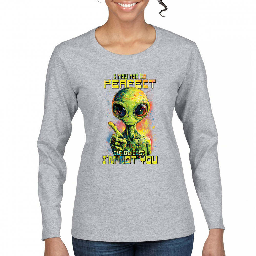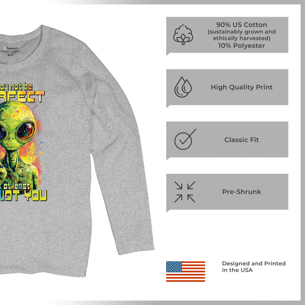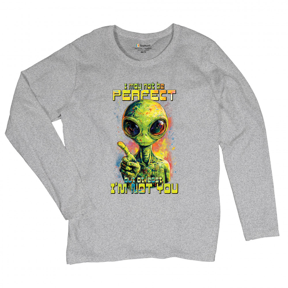 This smug alien design delivers sharp sarcastic humor with vibrant cosmic flair. Featuring a big-eyed extraterrestrial and the quote “I may not be perfect, but at least I’m not you,†it’s perfect for sci-fi fans, alien lovers, jokesters, and oddballs alike. A bold, funny statement for parties, UFO events, and festivals.