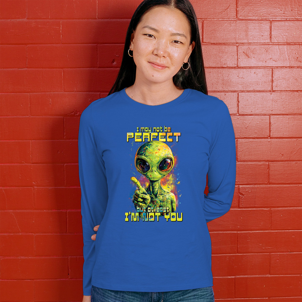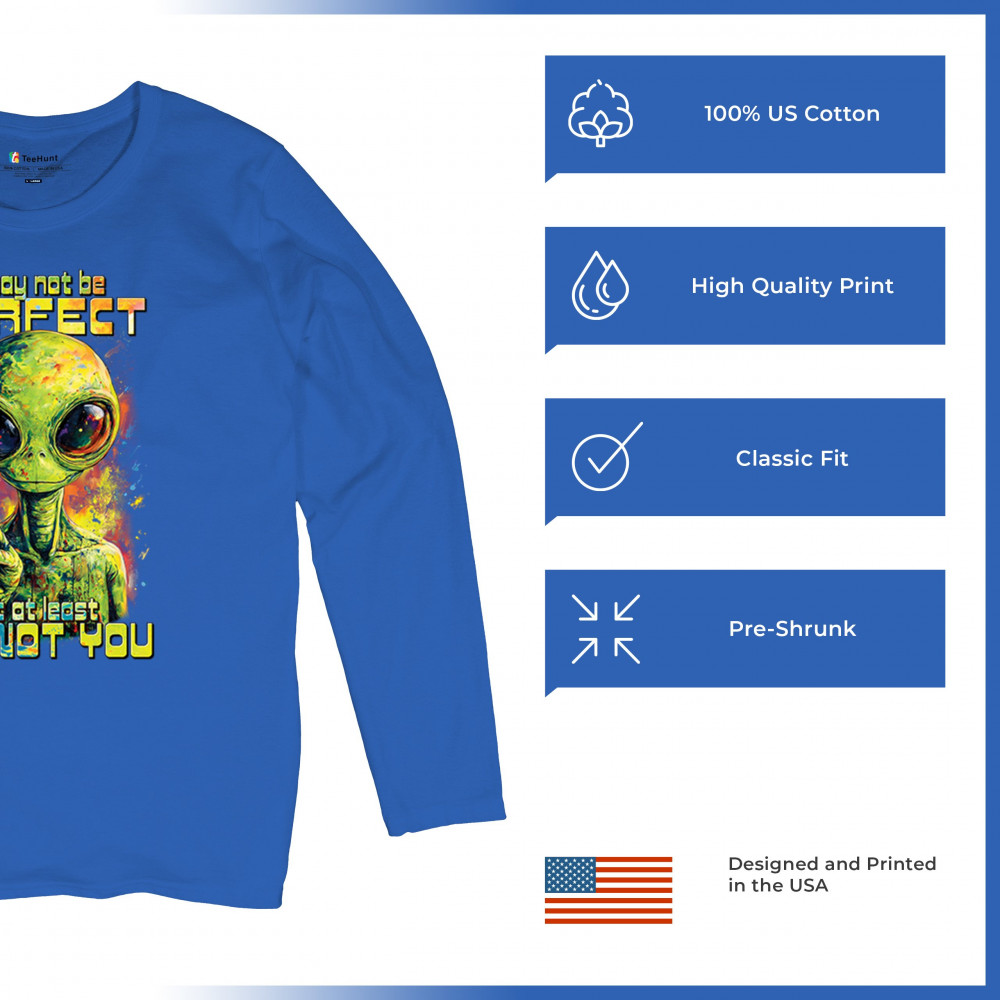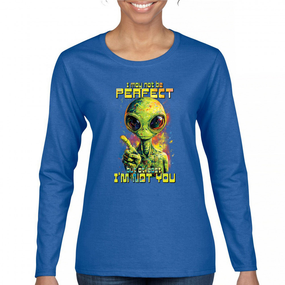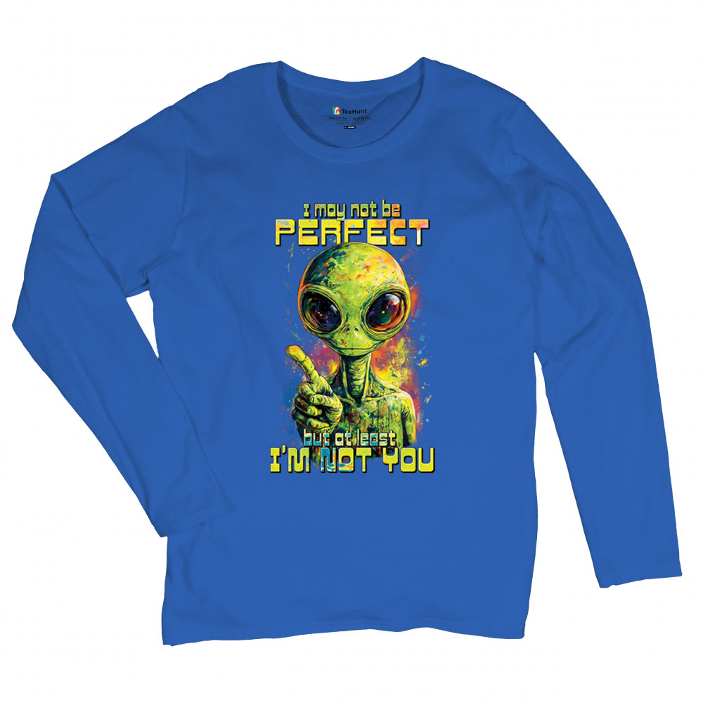 This smug alien design delivers sharp sarcastic humor with vibrant cosmic flair. Featuring a big-eyed extraterrestrial and the quote “I may not be perfect, but at least I’m not you,†it’s perfect for sci-fi fans, alien lovers, jokesters, and oddballs alike. A bold, funny statement for parties, UFO events, and festivals.