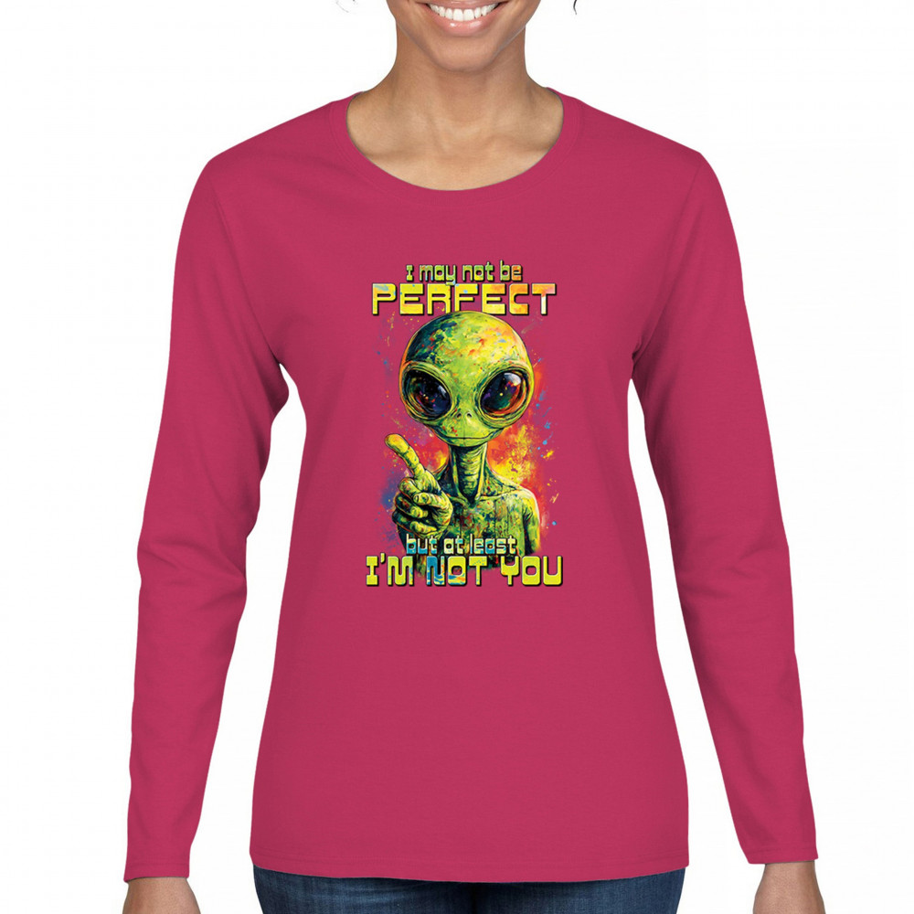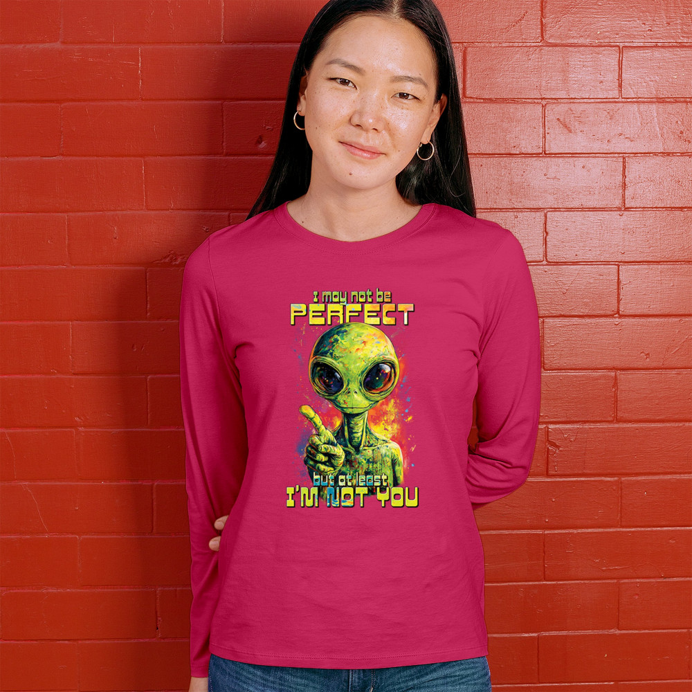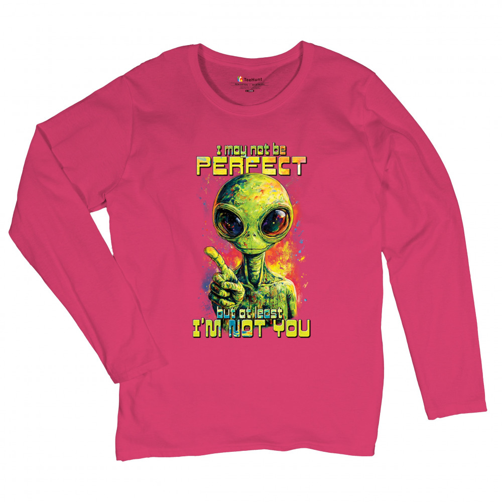 This smug alien design delivers sharp sarcastic humor with vibrant cosmic flair. Featuring a big-eyed extraterrestrial and the quote “I may not be perfect, but at least I’m not you,†it’s perfect for sci-fi fans, alien lovers, jokesters, and oddballs alike. A bold, funny statement for parties, UFO events, and festivals.